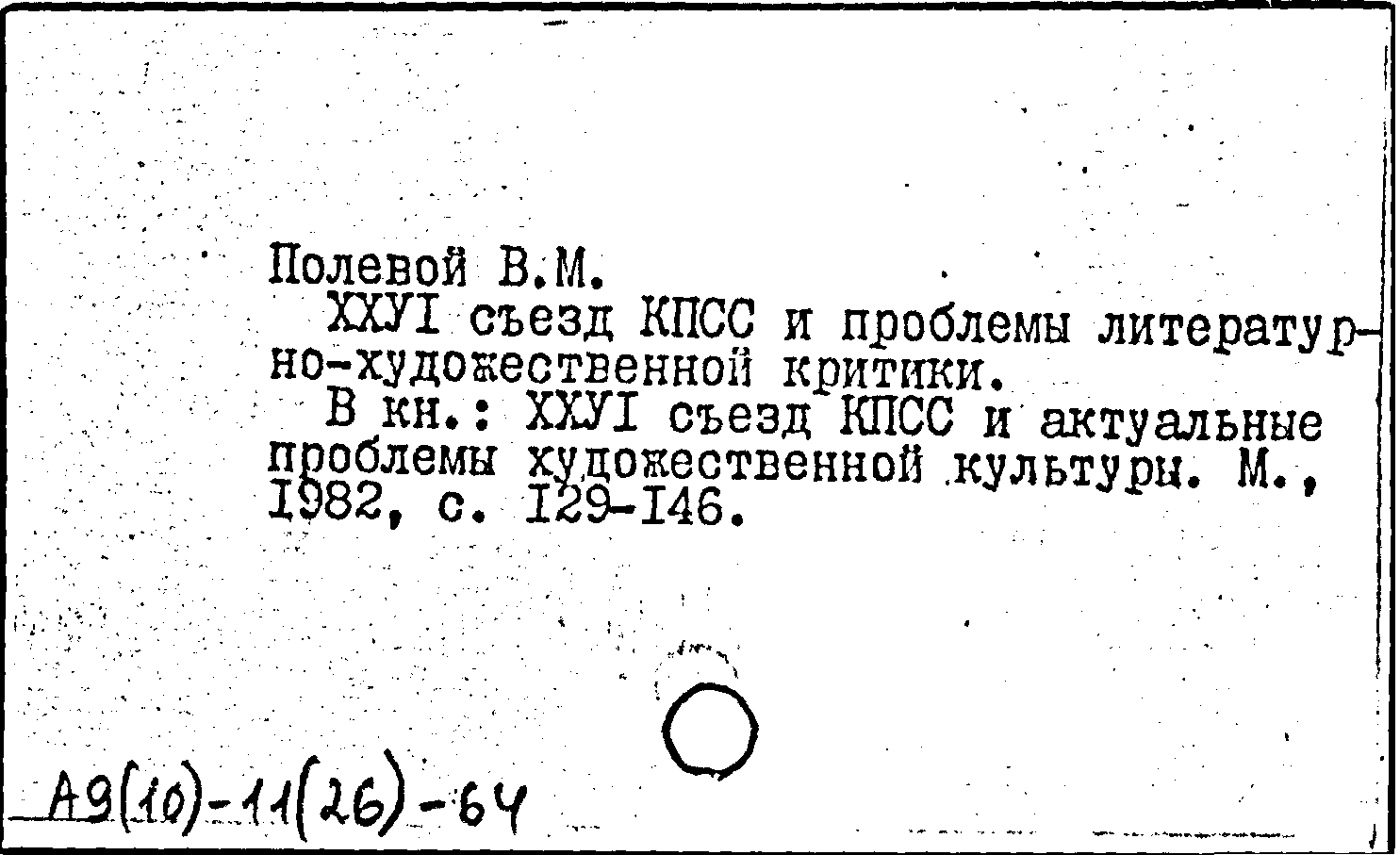 XXVI съезд КПСС и проблемы литературно-художественной критики