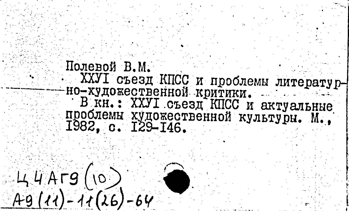Книга (аналит. описание): XXVI съезд КПСС и проблемы литературно-художественной критики