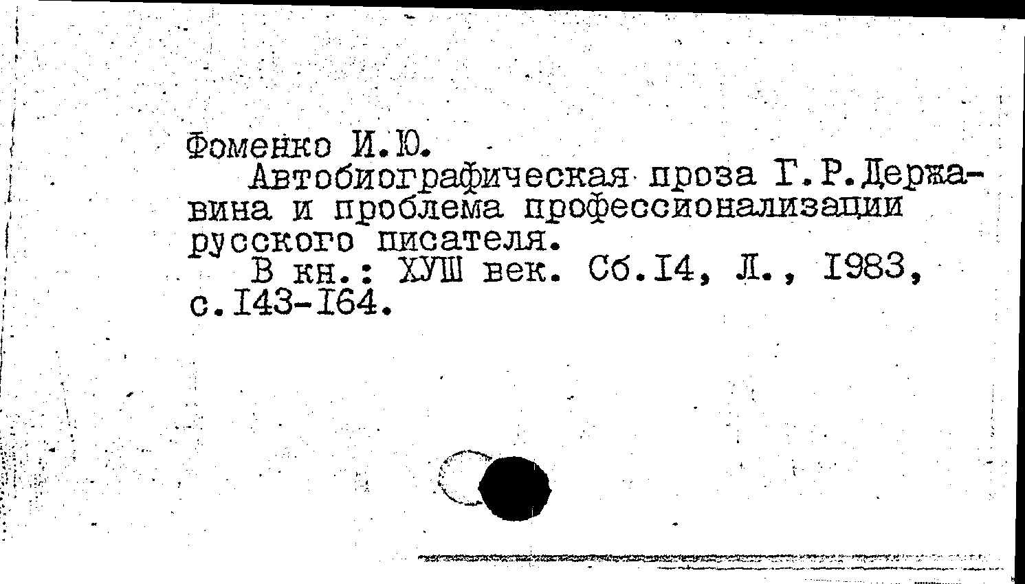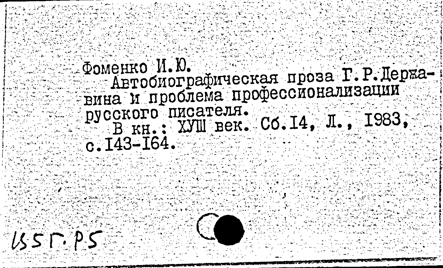 Книга (аналит. описание): Автобиографическая проза Г. Р. Державина и проблема профессионализации русского писателя