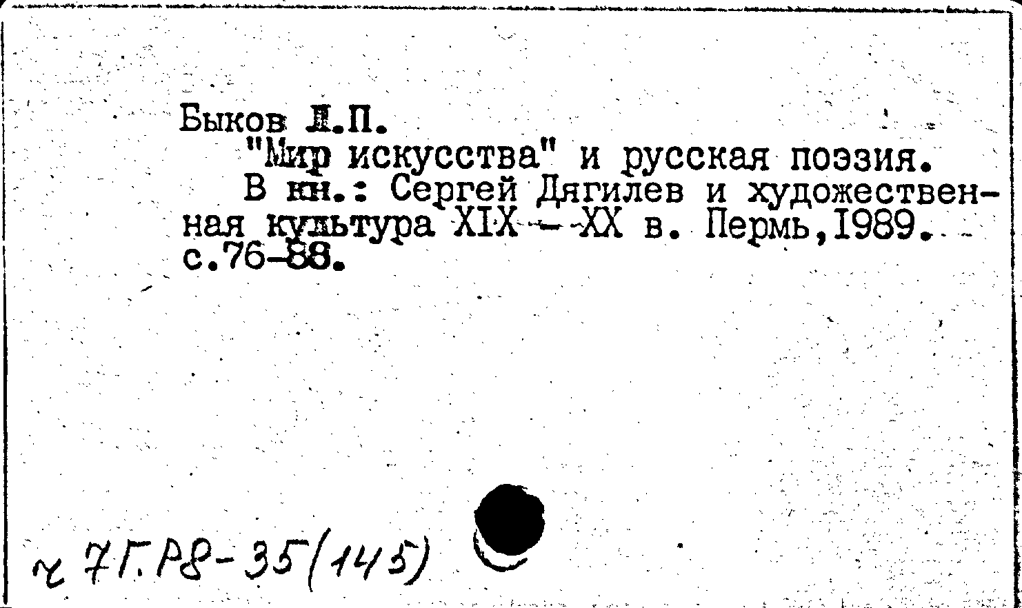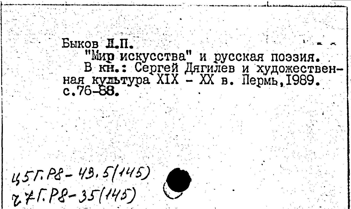 Книга (аналит. описание): "Мир искусства" и русская поэзия