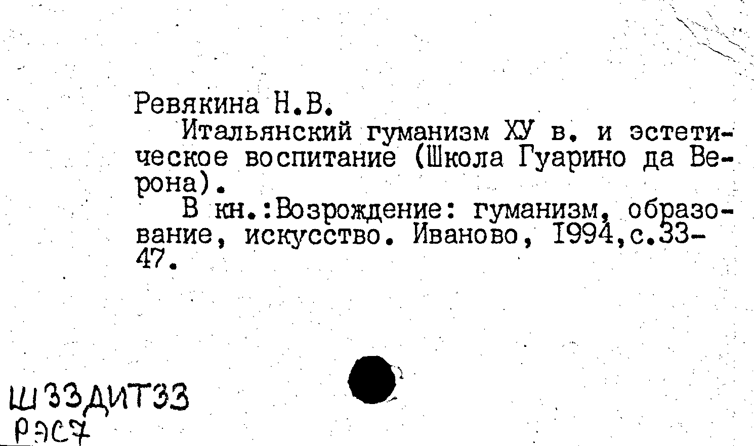 Книга (аналит. описание): Итальянский гуманизм XV в. и эстетическое воспитание (Школа Гуарино да Верона)