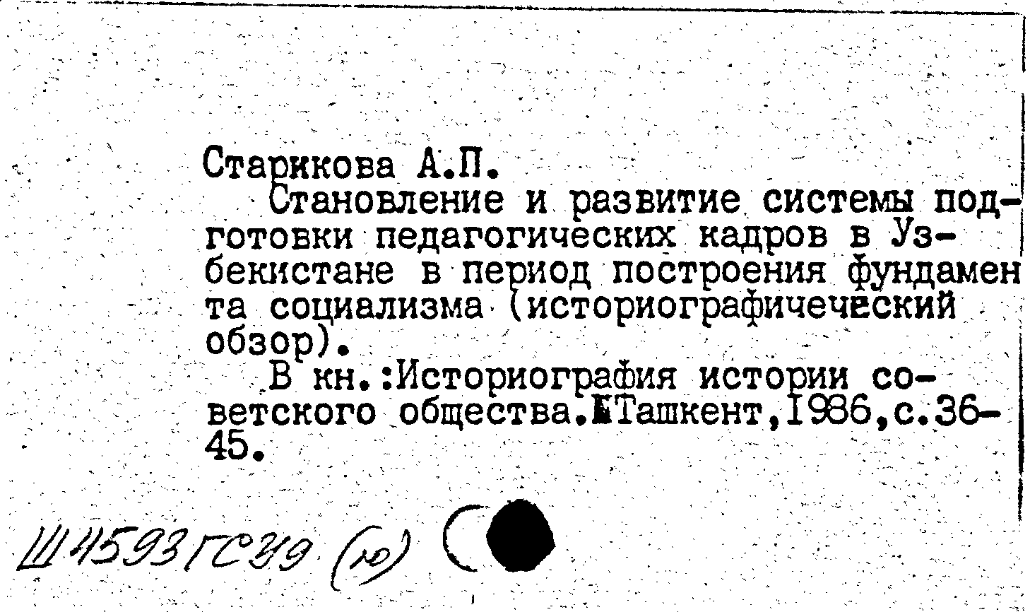 Книга (аналит. описание): Становление и развитие системы подготовки педагогических кадров в Узбекистане в период построения фундамента социализма (историографический обзор)