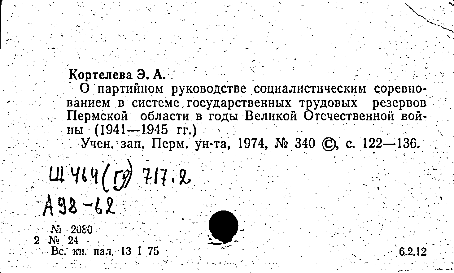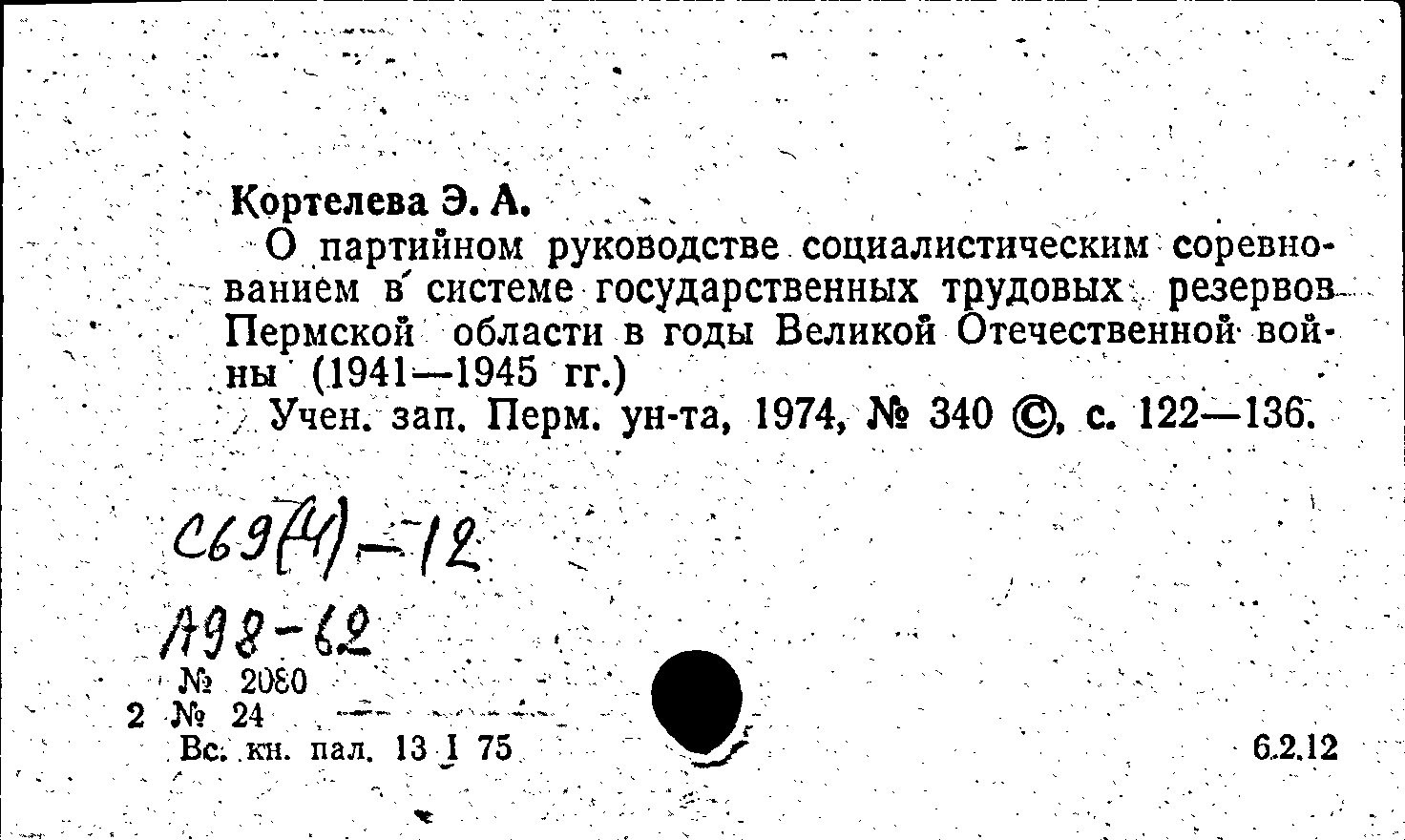 Книга (аналит. описание): О партийном руководстве социалистическим соревнованием в системе государственных трудовых резервов Пермской области в годы Великой Отечественной войны (1941-1945 гг.)