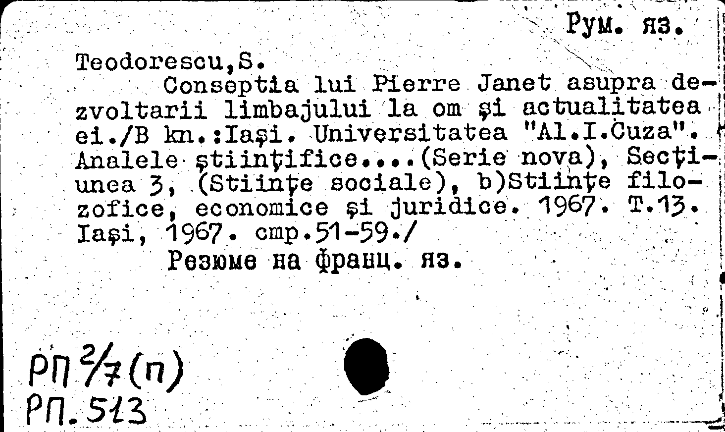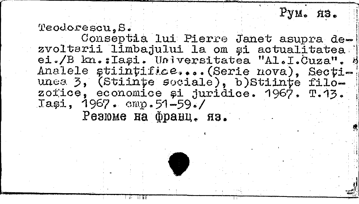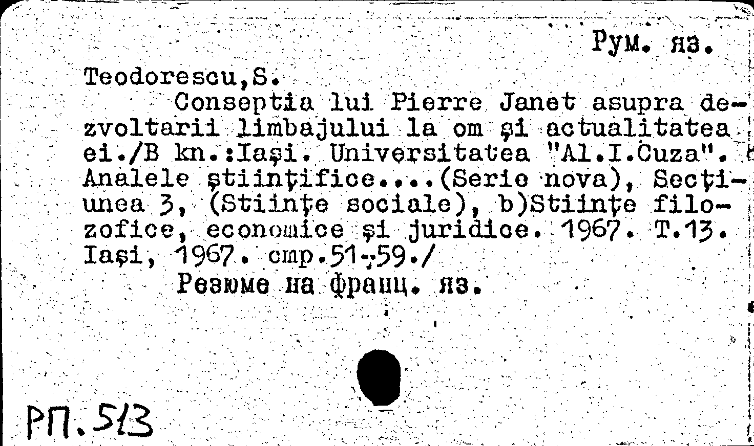 Книга (аналит. описание): Conseptia lui Pierre Janet asupra dezvoltarii limbajului la om si actualitateae?