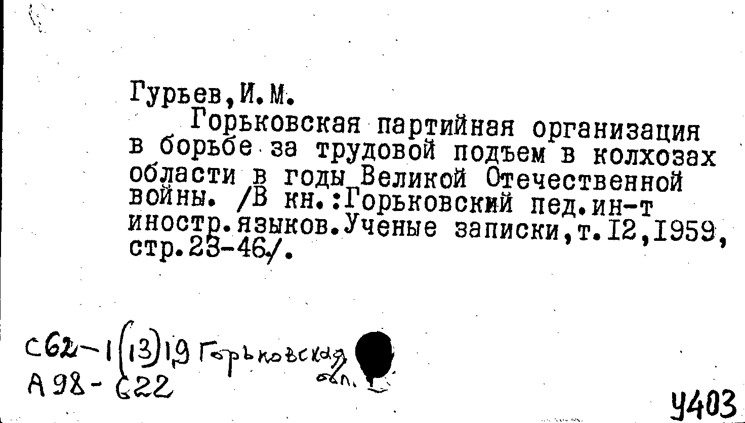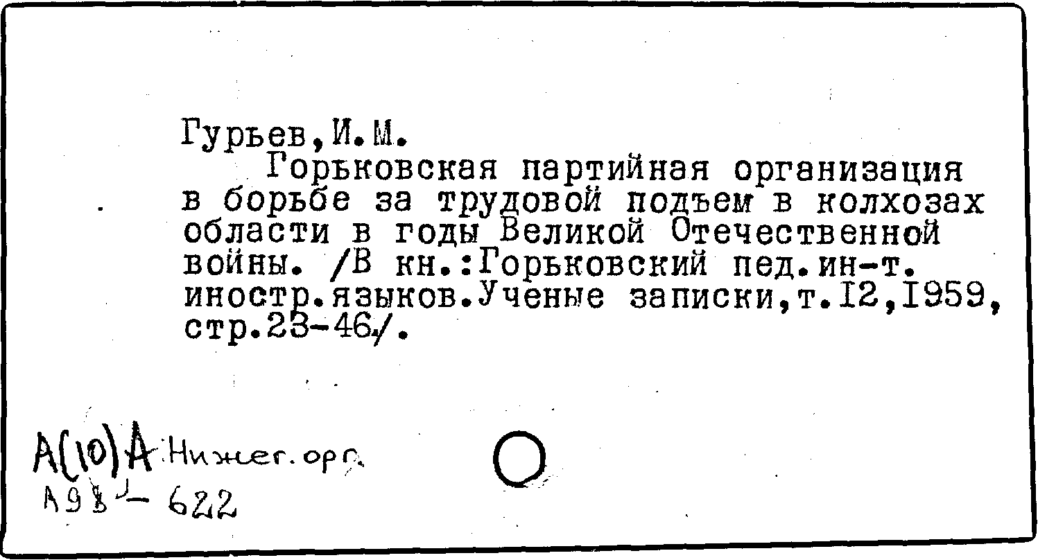 Книга (аналит. описание): Горьковская партийная организация в борьбе за трудовой подъем в колхозах области в годы Великой Отечественной войны