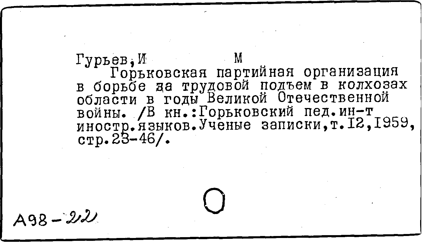 Горьковская партийная организация в борьбе за трудовой подъем в колхозах области в годы Великой Отечественной войны