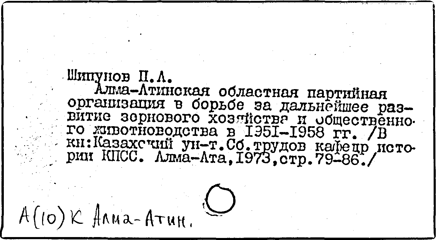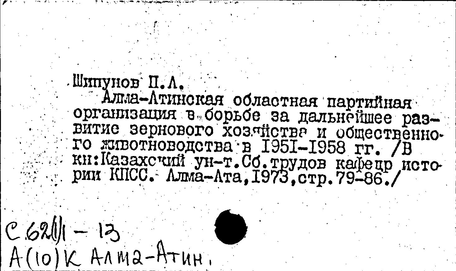Алма-Атинская областная партийная организация в борьбе за дальнейшее развитие зернового хозяйства и общественного животноводства в 1951-1958 гг.