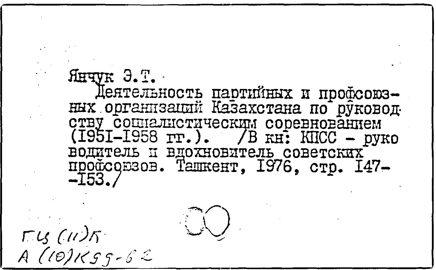 Деятельность партийных и профсоюзных организации Казахстана по руководству социалистическим соревнованием (1951-1958 гг.)