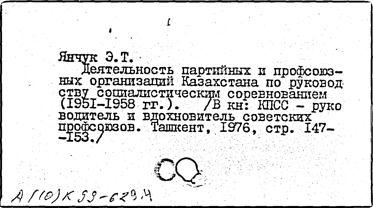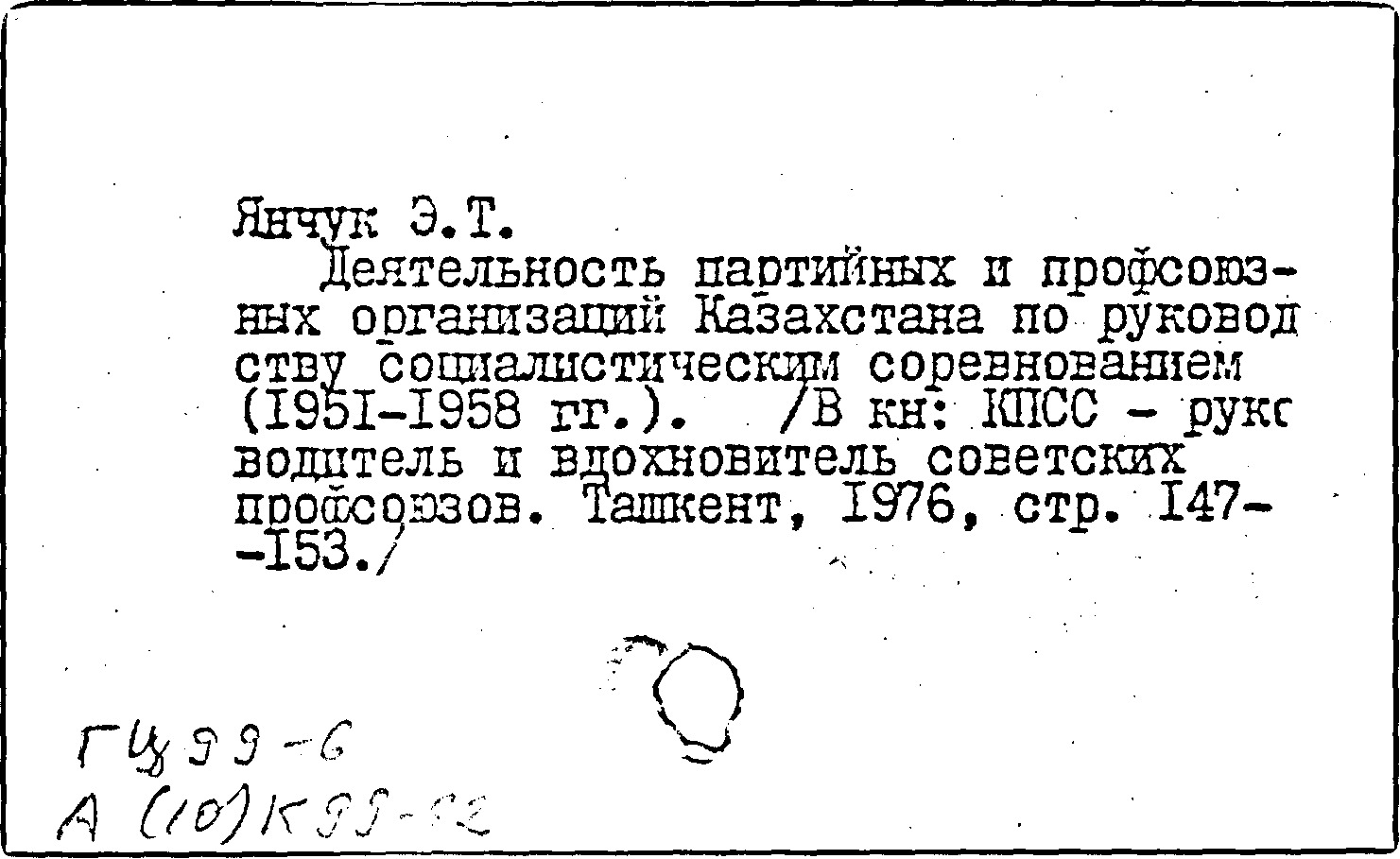 Книга (аналит. описание): Деятельность партийных и профсоюзных организации Казахстана по руководству социалистическим соревнованием (1951-1958 гг.)