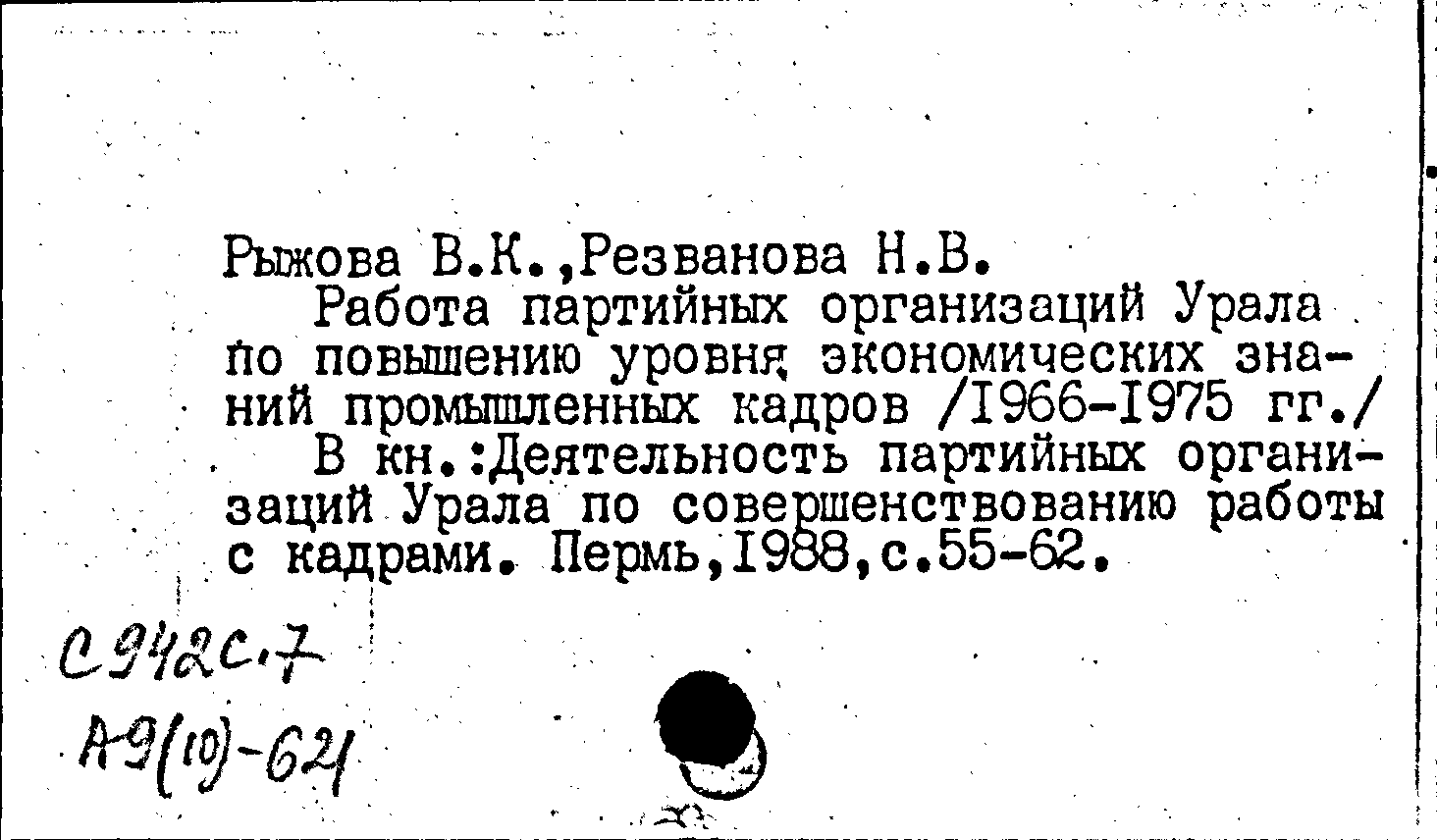 Книга (аналит. описание): Работа партийных организаций Урала по повышению уровне экономических знаний промышленных кадров (1966-1975 гг.)