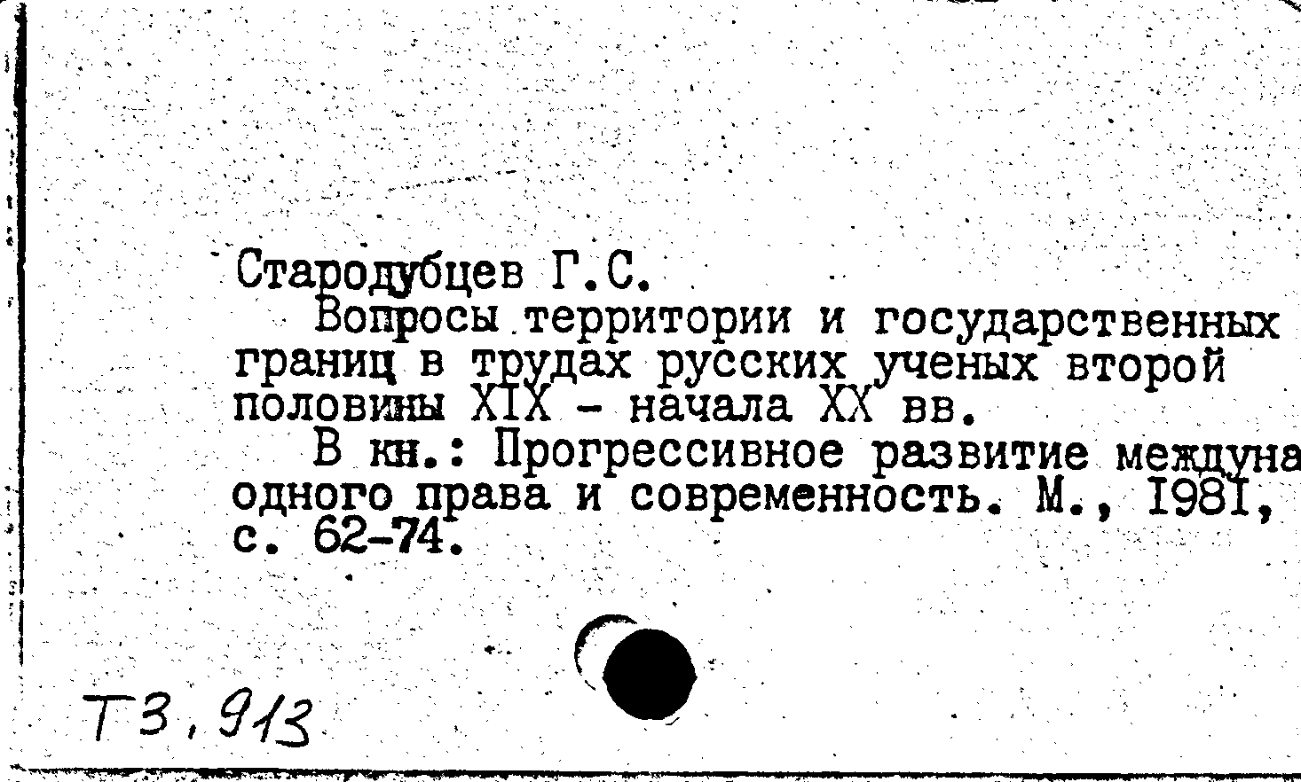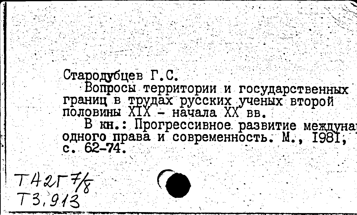 Книга (аналит. описание): Вопросы территории и государственных границ в трудах русских ученых второй половины XIX - начала XX вв.