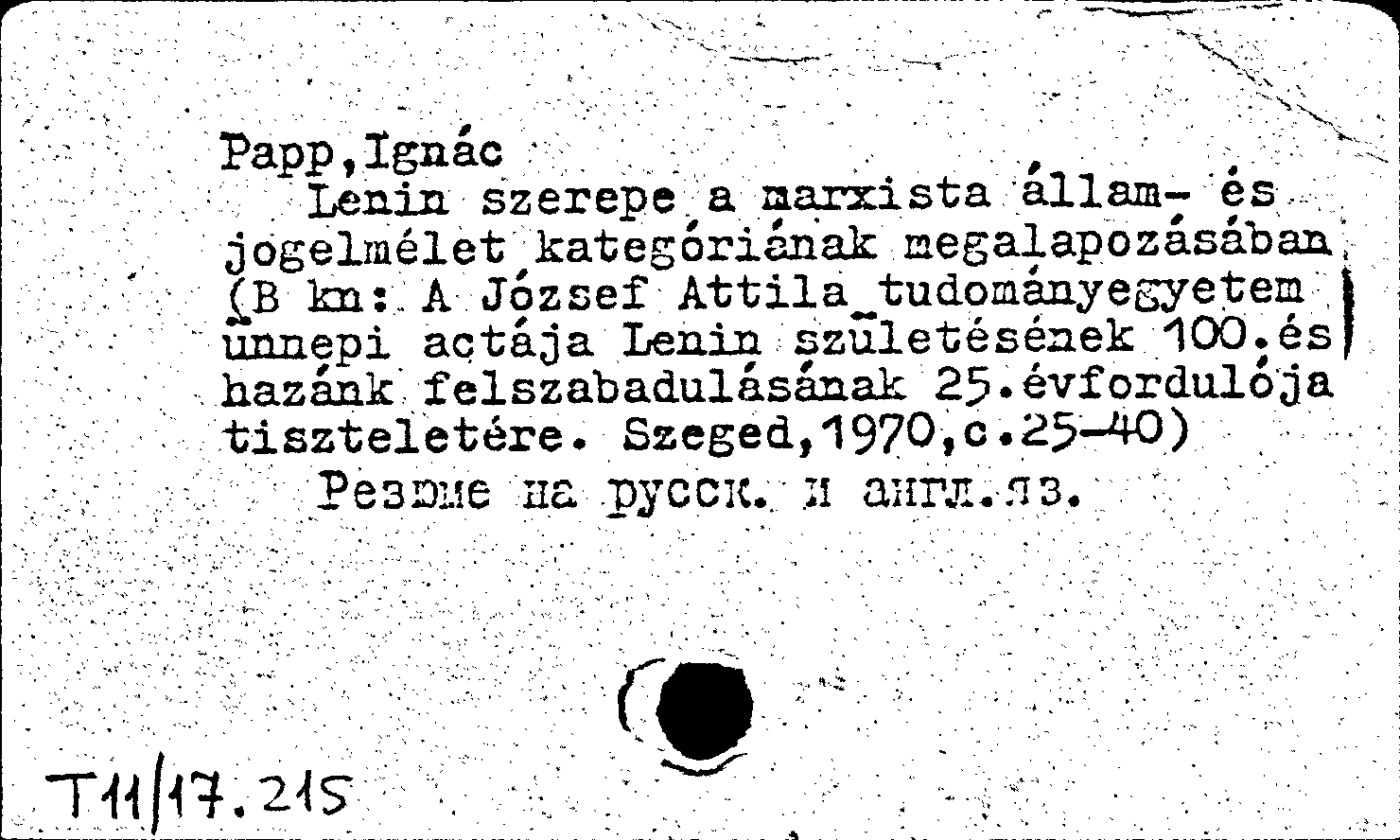 Книга (аналит. описание): Lenin szerepe a marxista allam- es jogelmelet kategorianak megalapozasaban