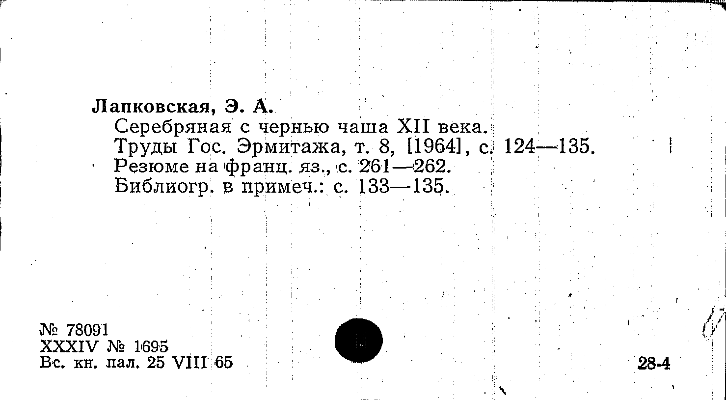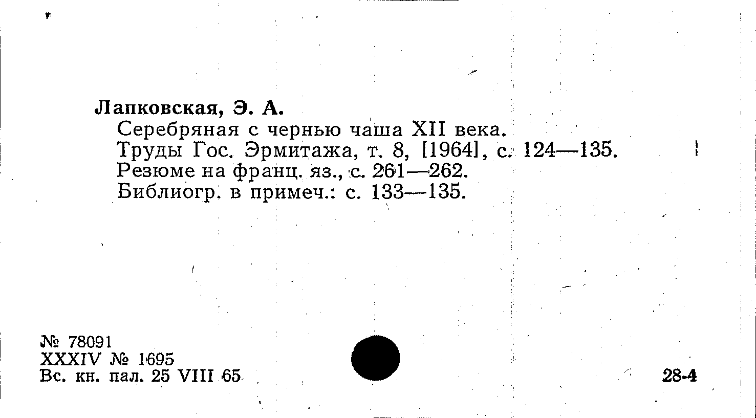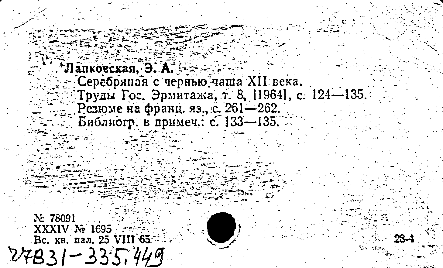 Книга (аналит. описание): Серебряная с чернью чаша XII века