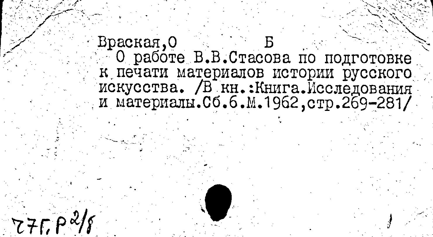 Книга (аналит. описание): О работе В. В. Стасова по подготовке к печати материалов истории русского искусства