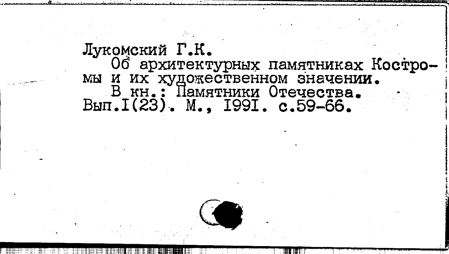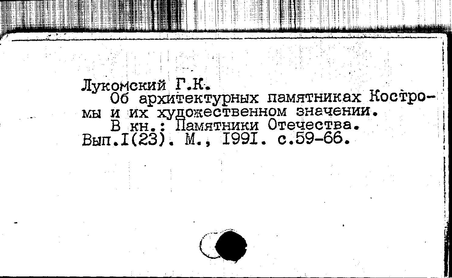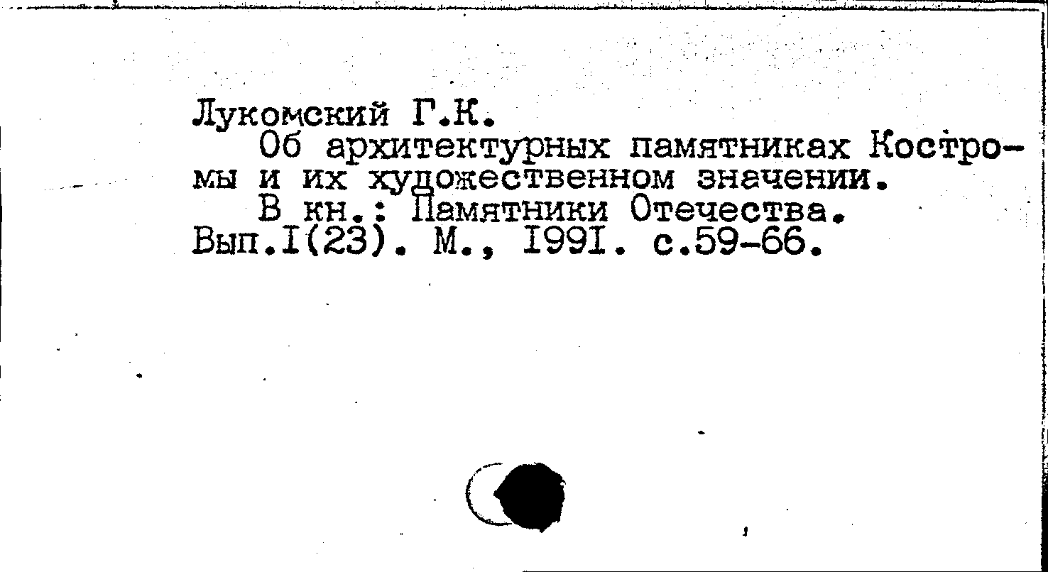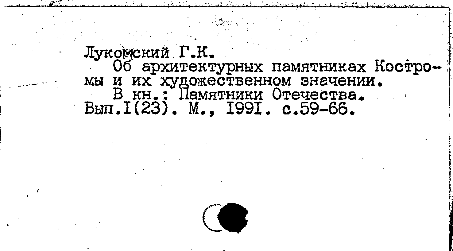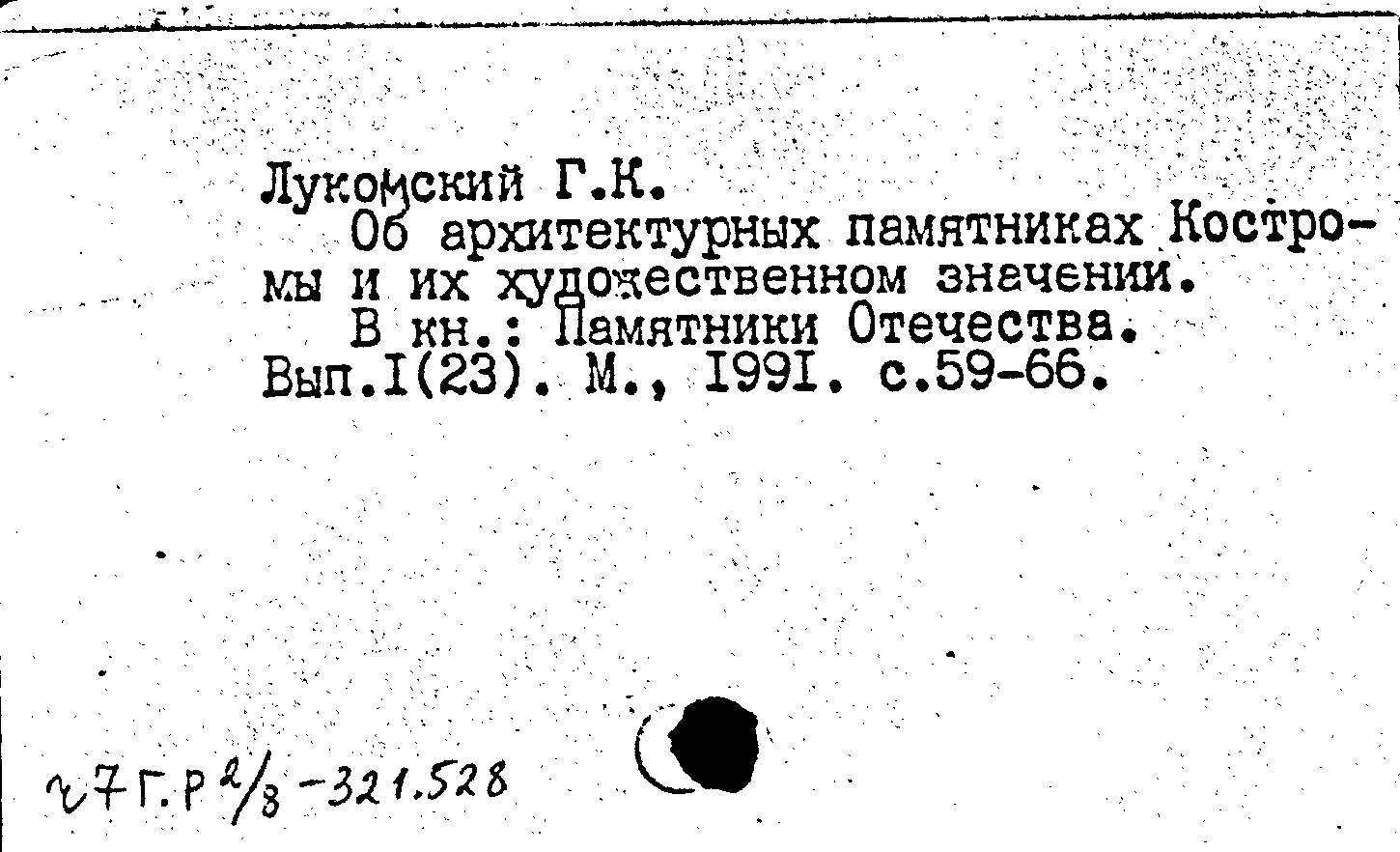 Книга (аналит. описание): Об архитектурных памятниках Костромы и их художественном значении