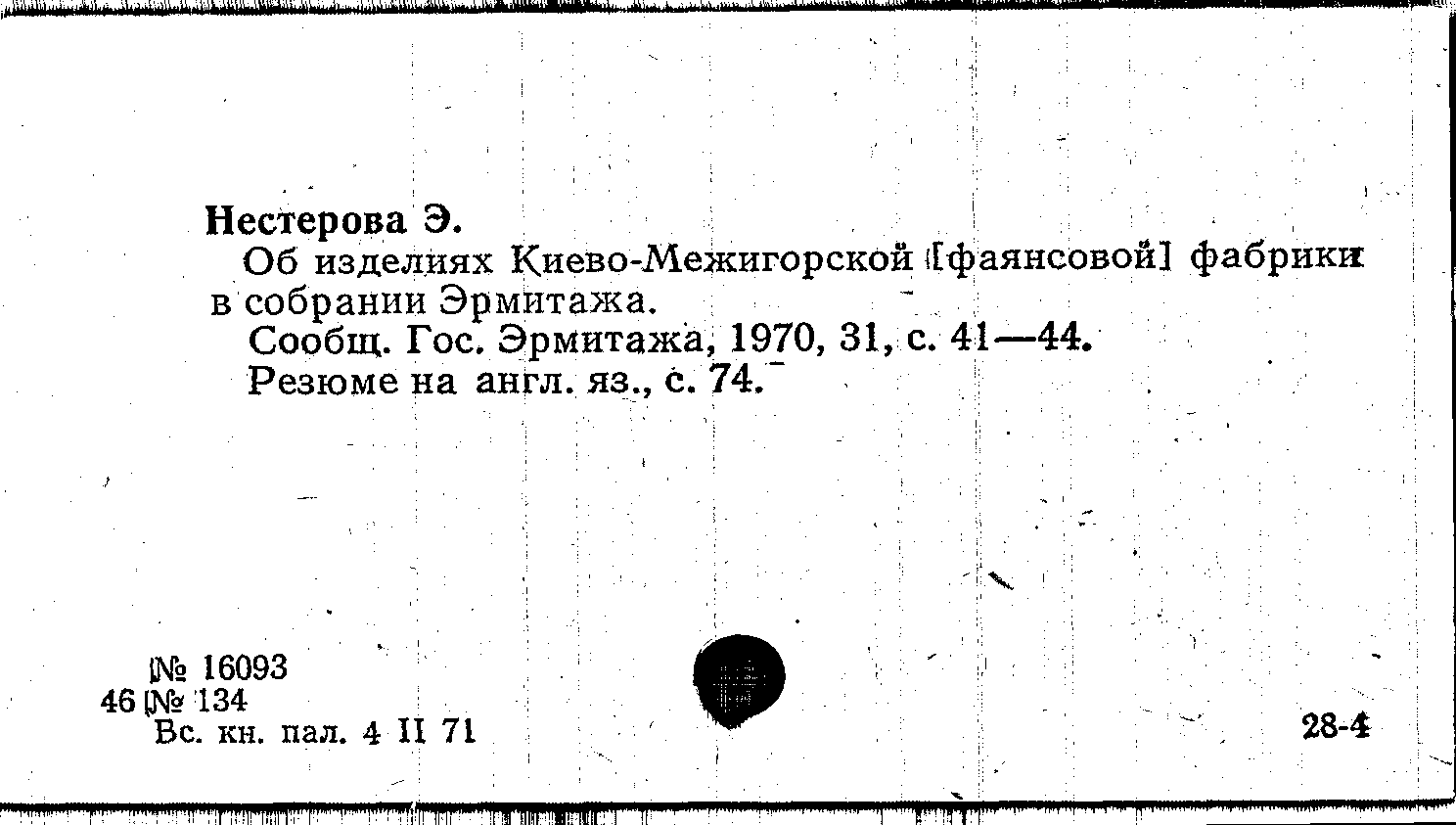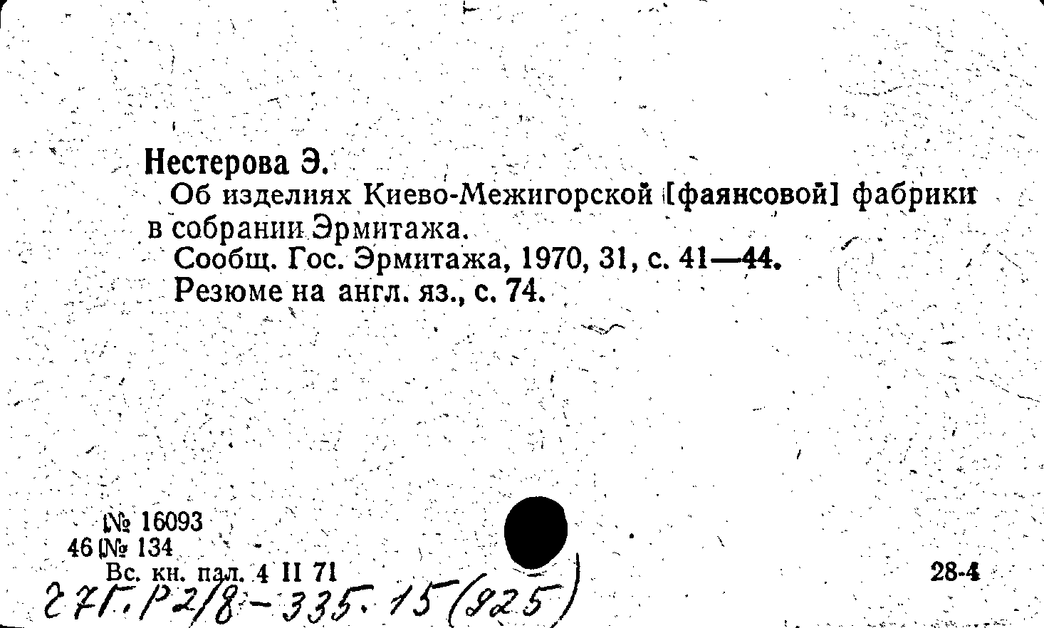 Об изделиях Киево-Межигорской [фаянсовой] фабрики в собрании Эрмитажа