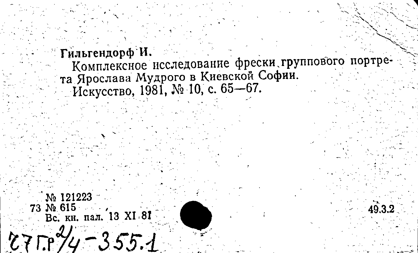 Книга (аналит. описание): Комплексное исследование фрески группового портрета Ярослава Мудрого в Киевской Софии