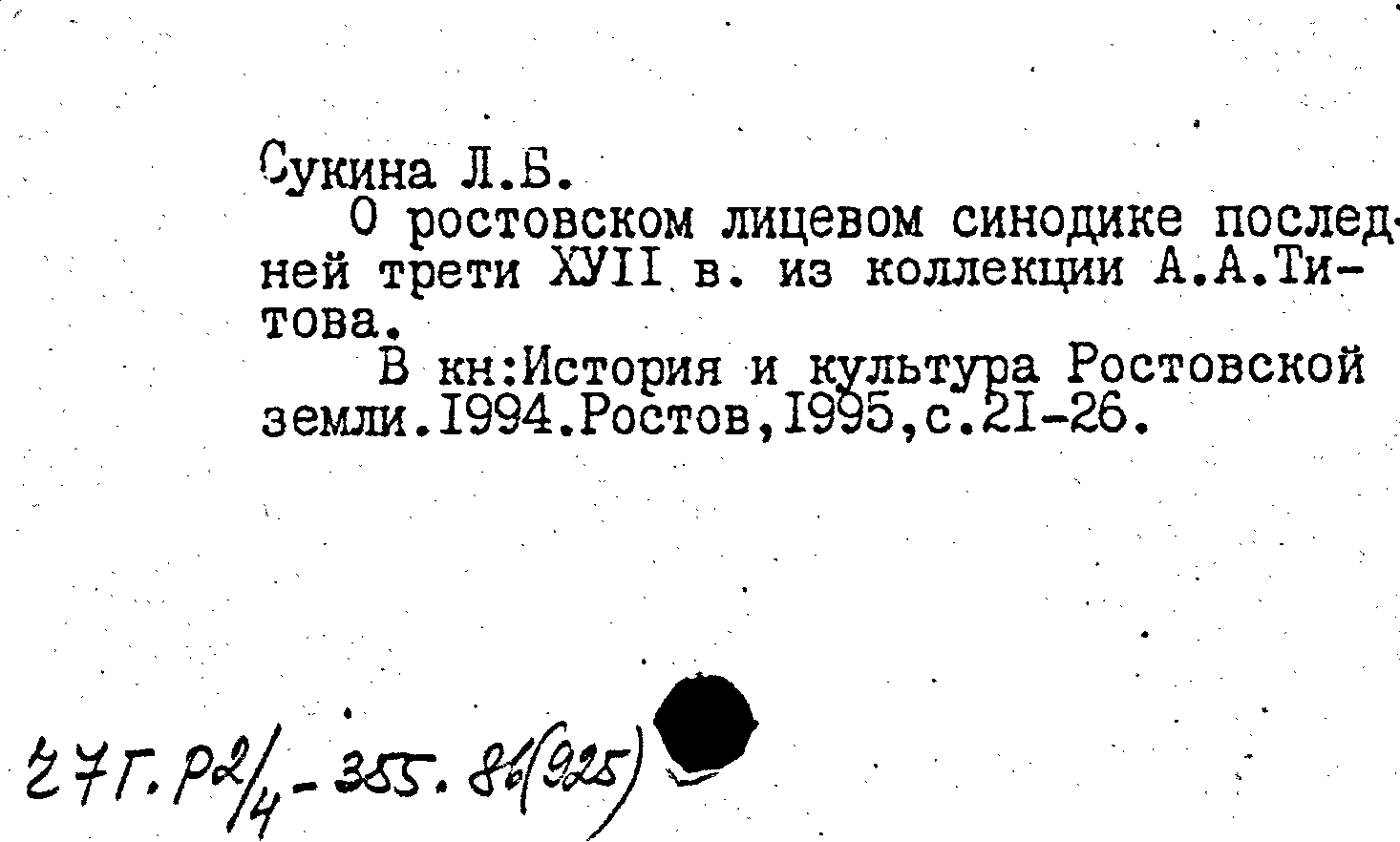 О ростовском лицевом синодике последней трети XVII в. из коллекции А. А. Титова