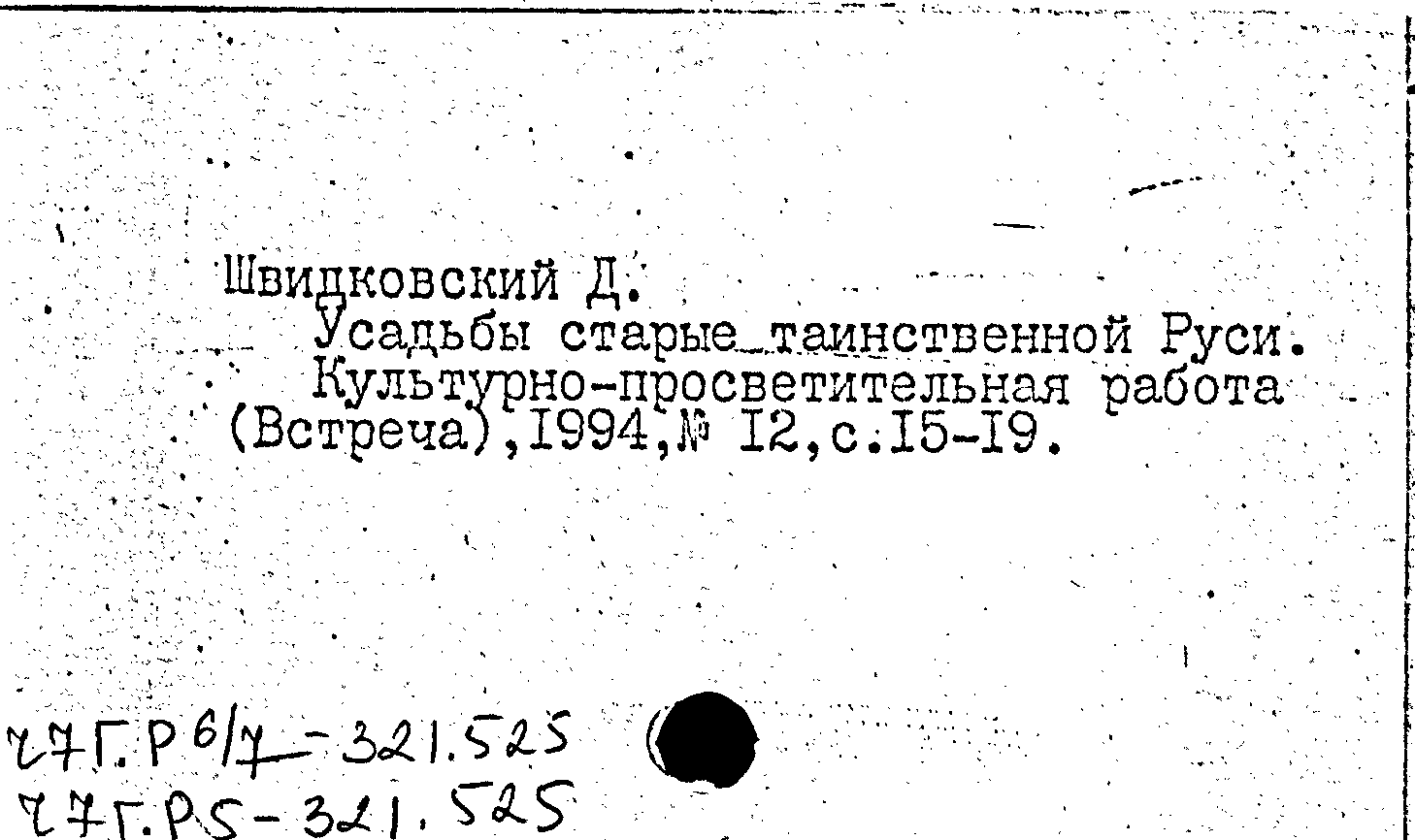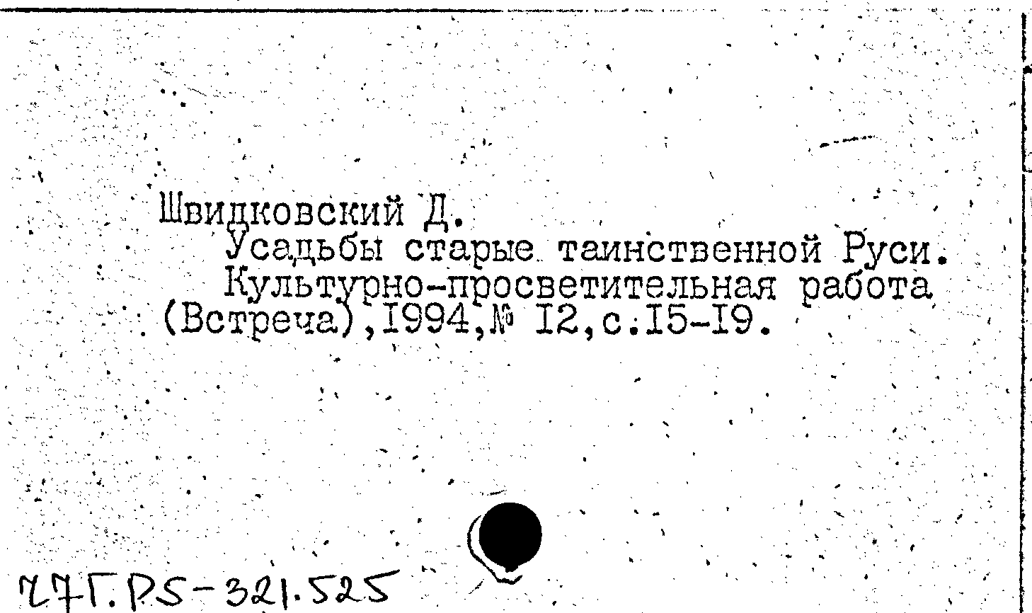 Книга (аналит. описание): Усадьбы старые таинственной Руси