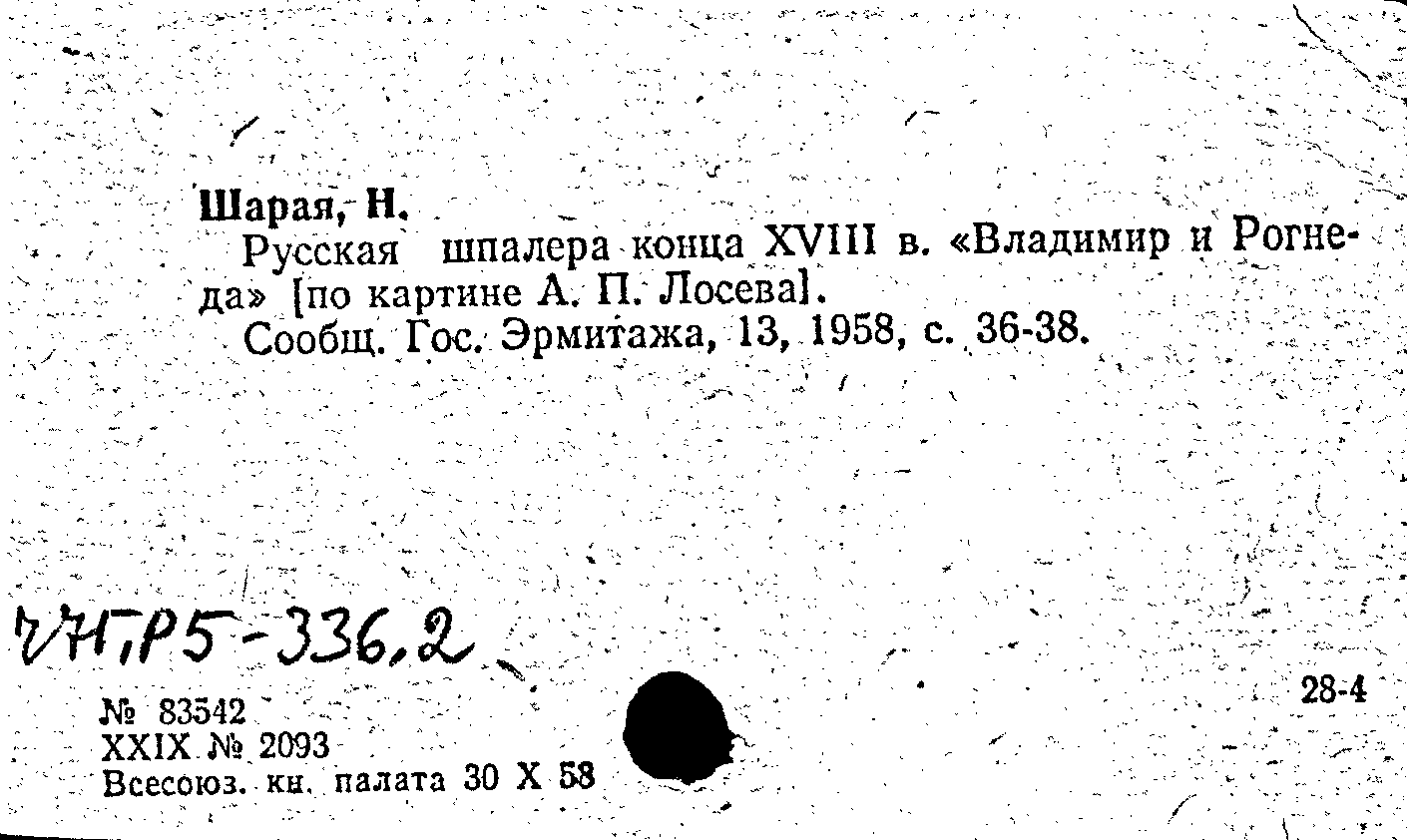 Книга (аналит. описание): Русская шпалера конца XVIII в. "Владимир и Рогнеда" [по картине А. П. Лосева]