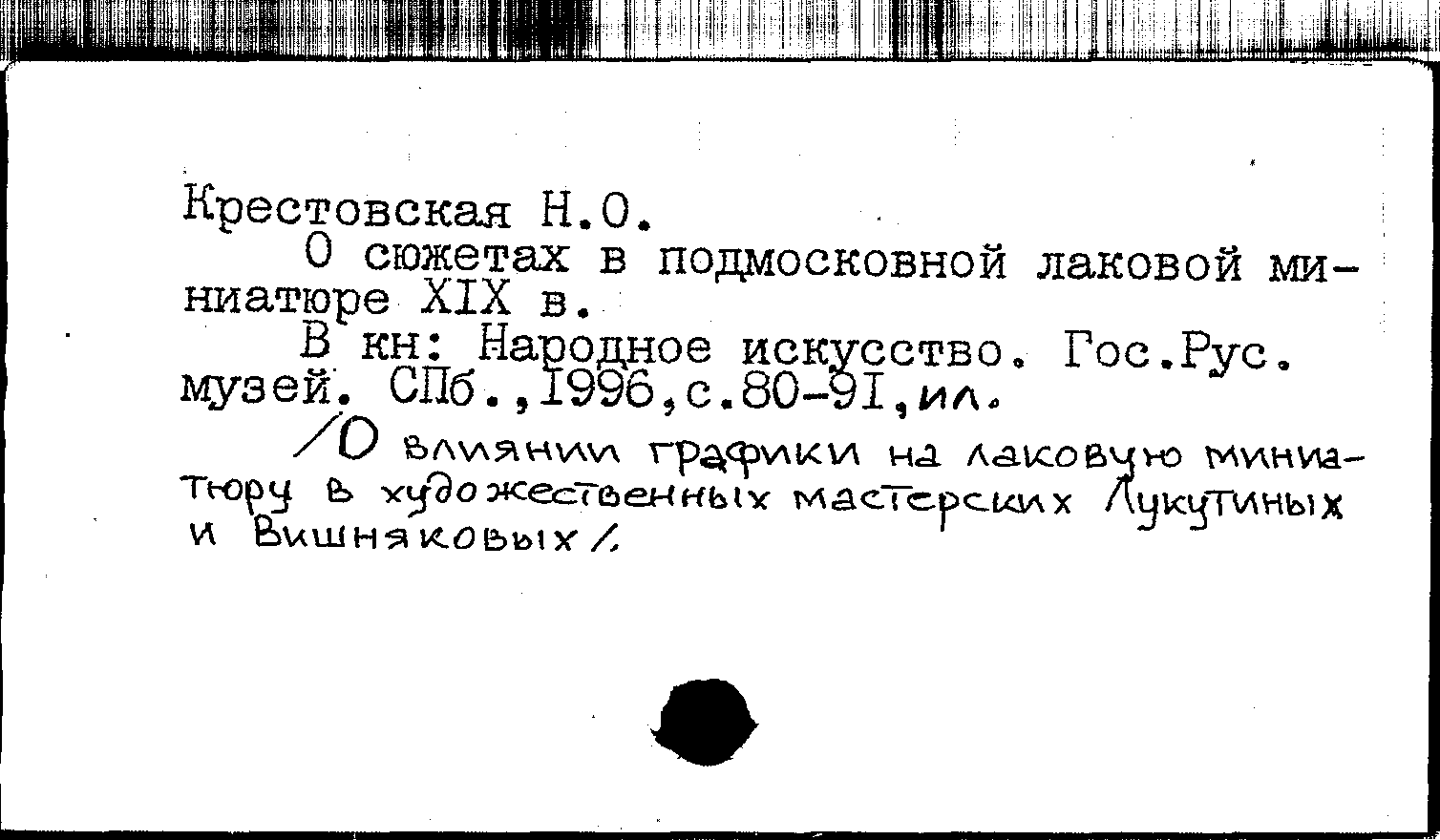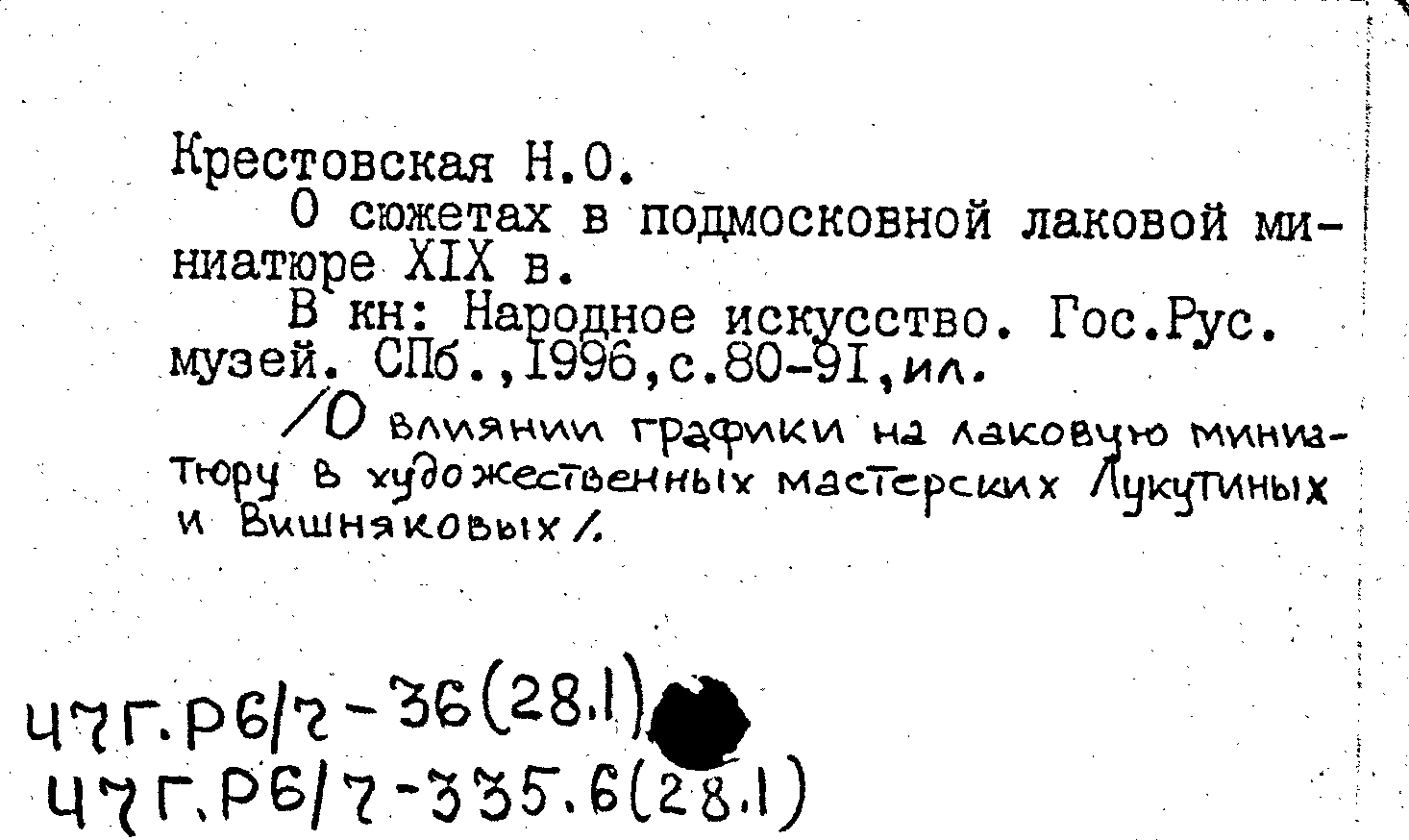 Книга (аналит. описание): О сюжетах в подмосковной лаковой миниатюре XIX в.
