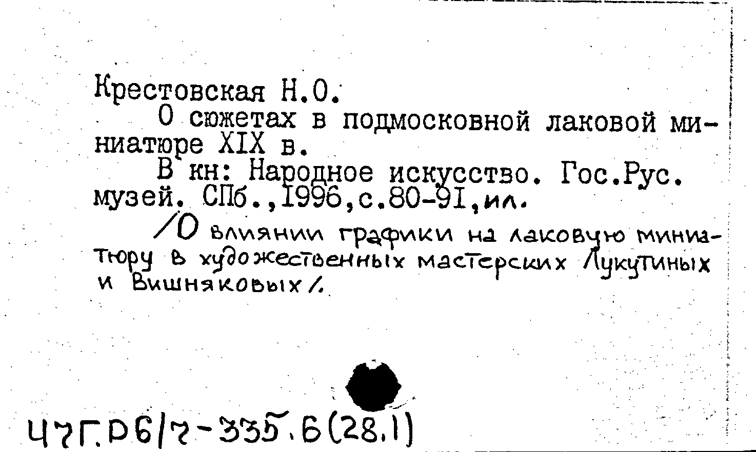 О сюжетах в подмосковной лаковой миниатюре XIX в.
