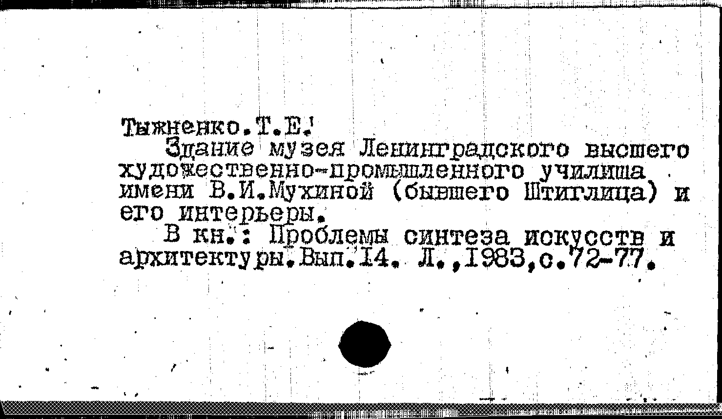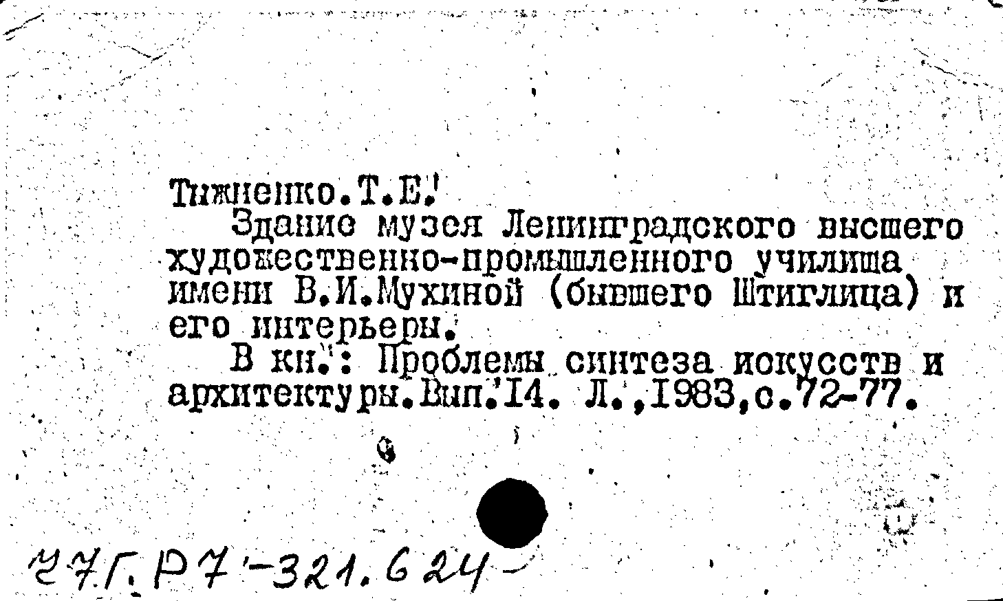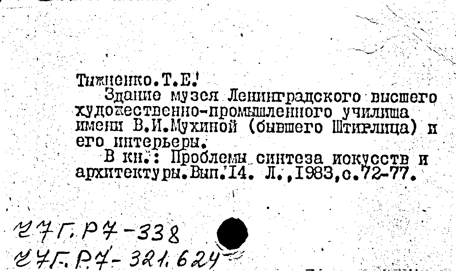 Книга (аналит. описание): Здание музея Ленинградского высшего художественно-промышленного училища имени В. И. Мухиной (бывшего Штиглица) и его интерьеры