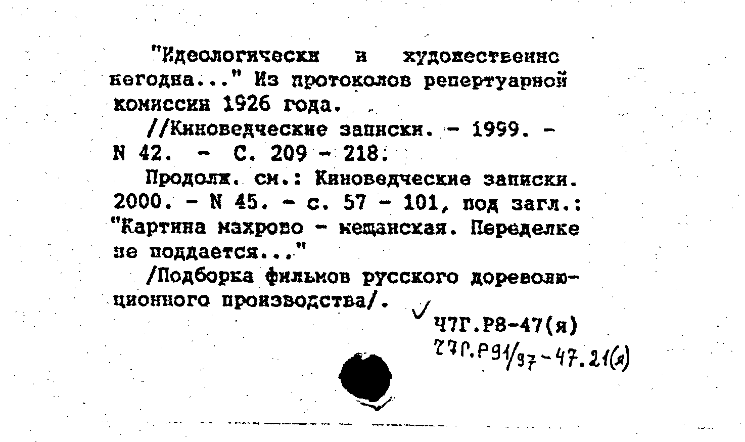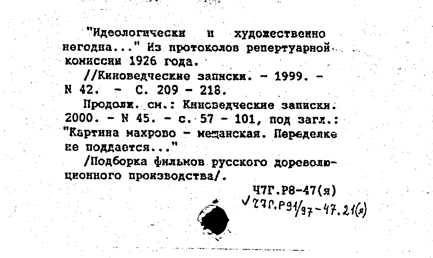Книга (аналит. описание): "Идеологически и художественно негодна..." Из протоколов репертуарной комиссии 1926 года