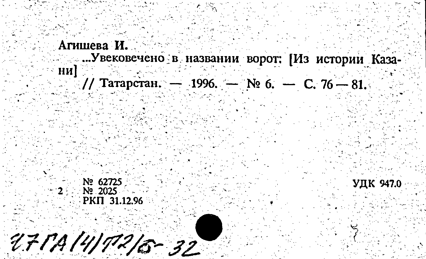 Книга (аналит. описание): ... Увековечено в названии ворот