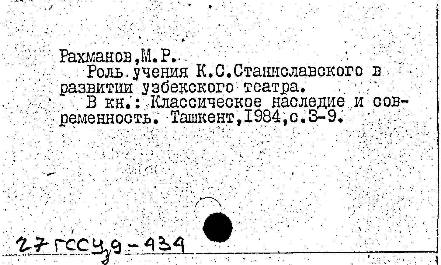 Книга (аналит. описание): Роль учения К. С. Станиславского в развитии узбекского театра