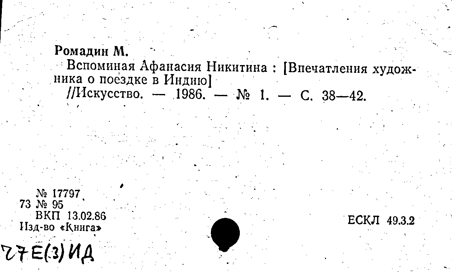 Книга (аналит. описание): Вспоминая Афанасия Никитина