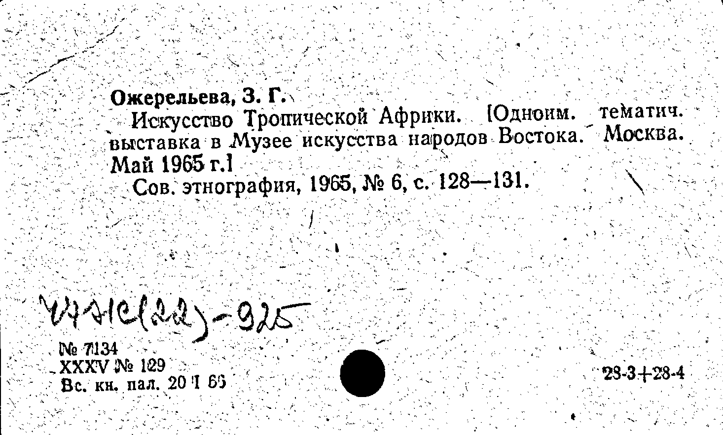 Статья: Искусство Тропической Африки. Советская этнография, № 6 /1965: № 6 /1965