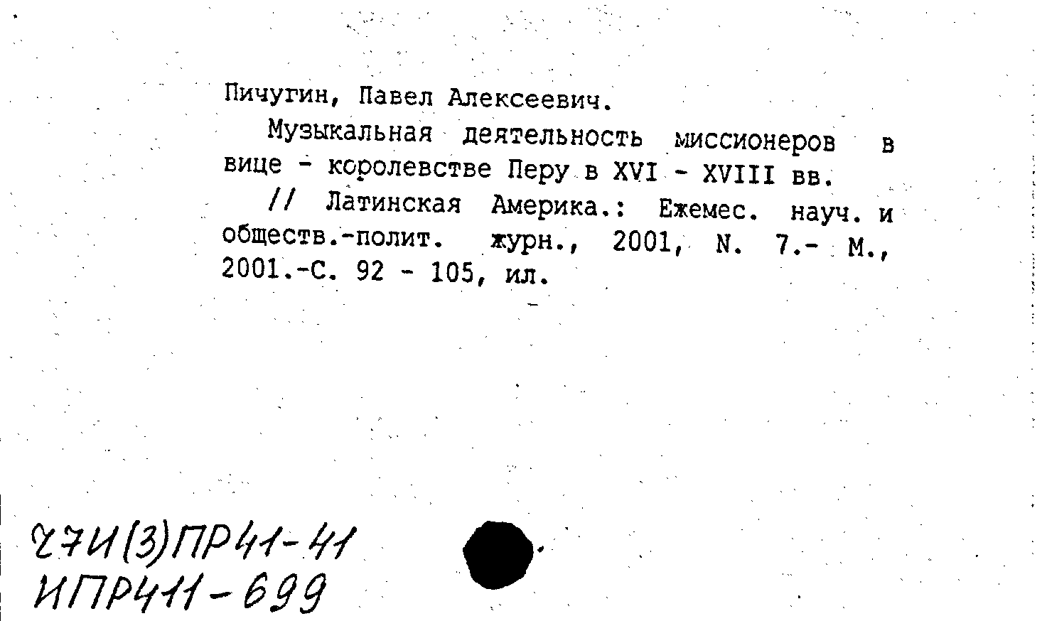 Книга (аналит. описание): Музыкальная деятельность миссионеров в вице - королевстве Перу в XVI-XVIII вв.