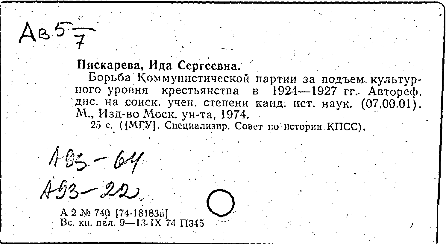 Фонд: КХ, Шифр: Ав 5 /7, Инв.№: 1451438