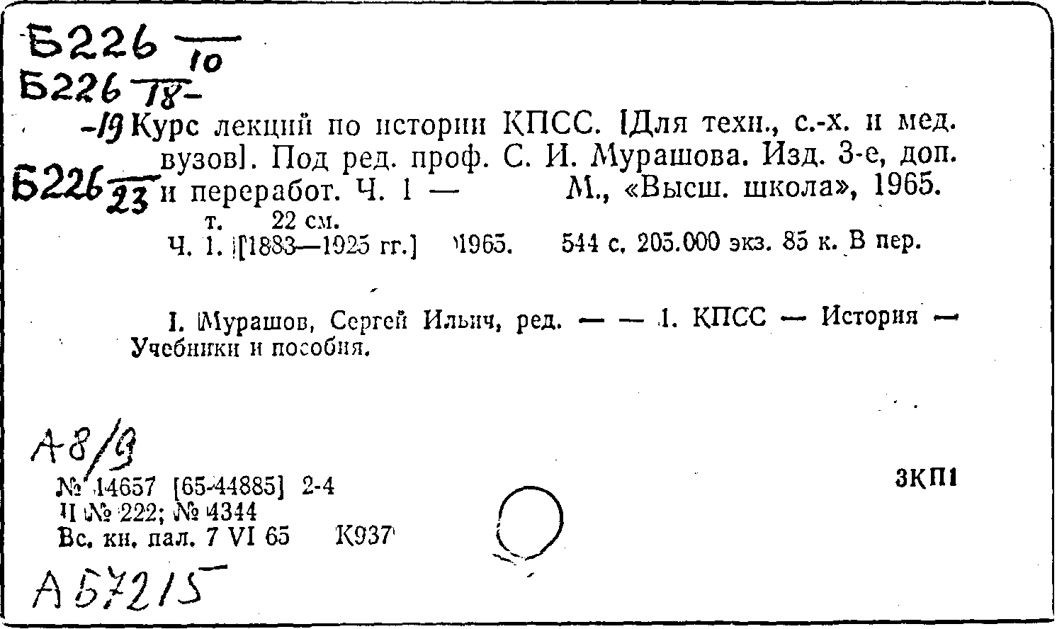 Фонд: КХ, Шифр: Б 226 /10, Инв.№: 1457162
