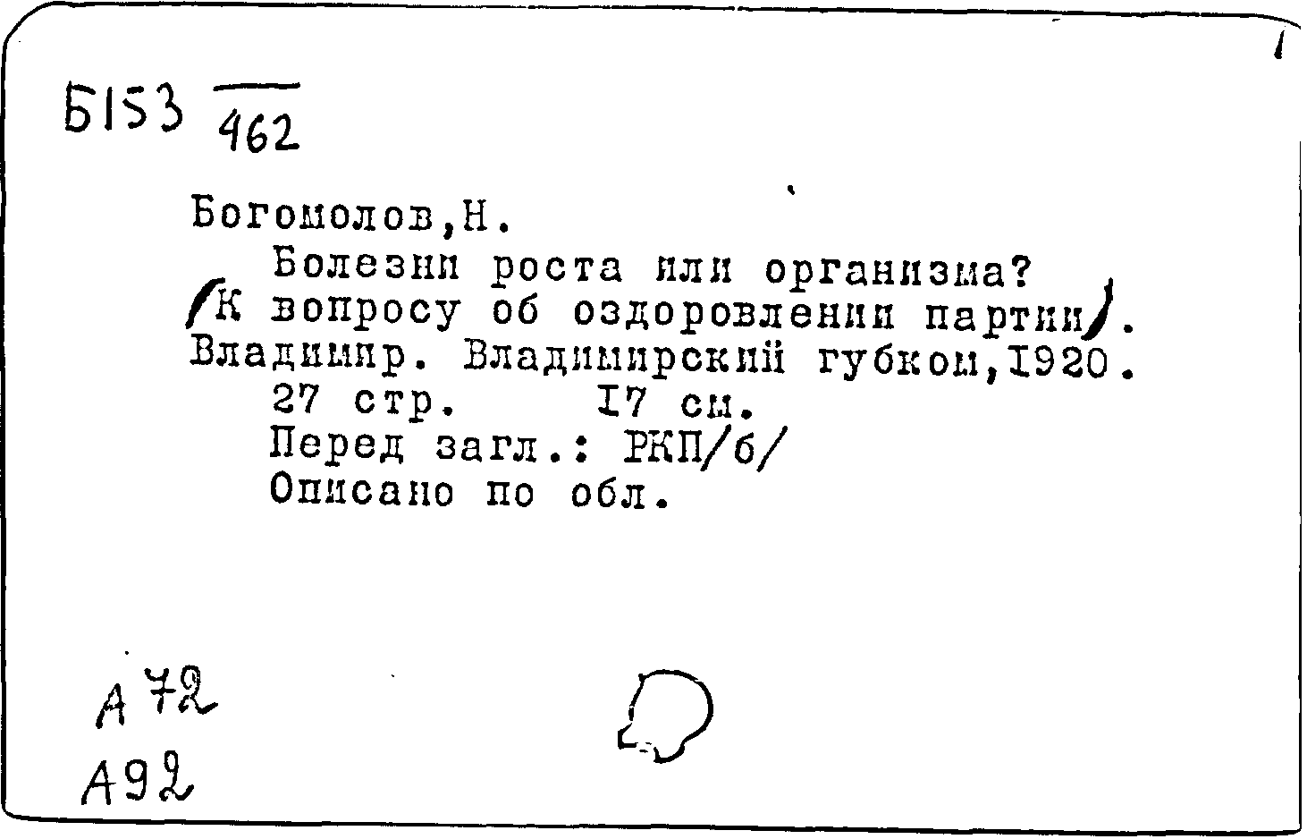 Болезни роста или организма?: (к вопросу об оздоровлении партии)