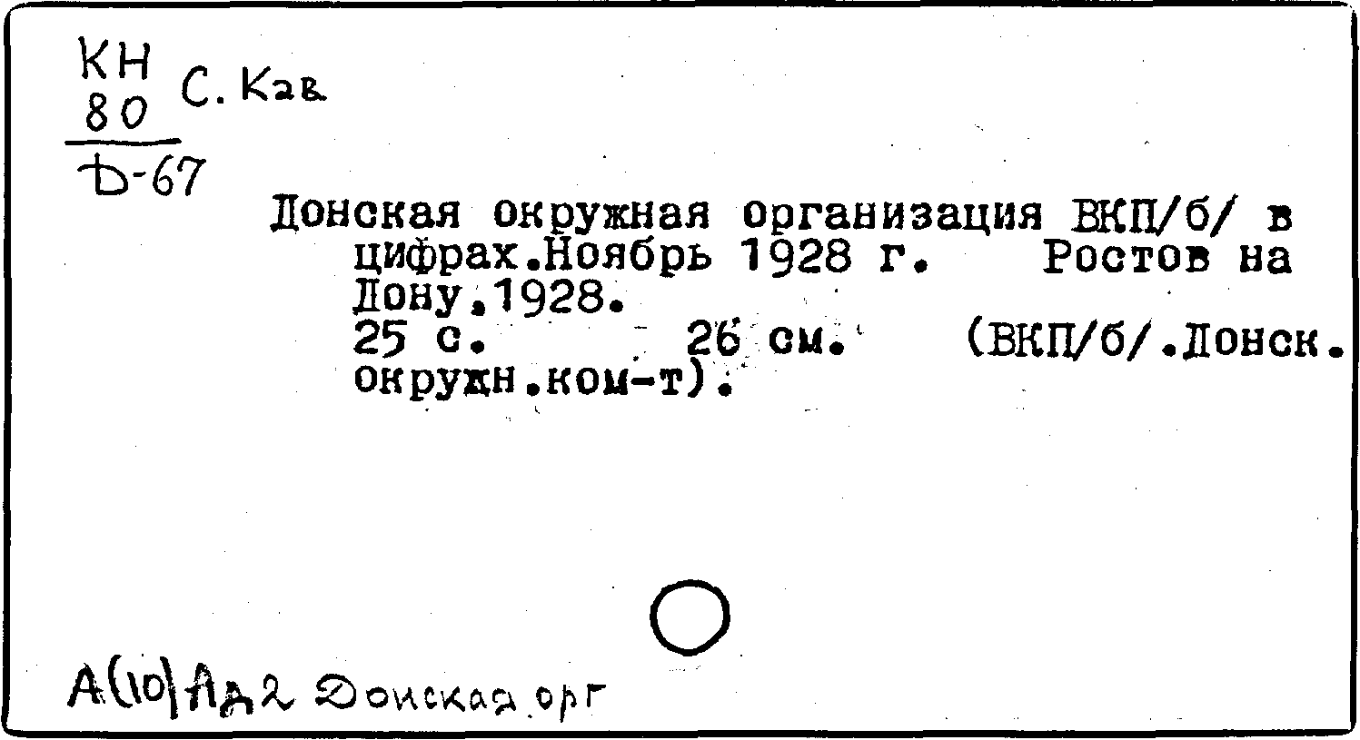 Фонд: КХ, Шифр: КН 80 С.Кав./Д67, Инв.№: 1466006