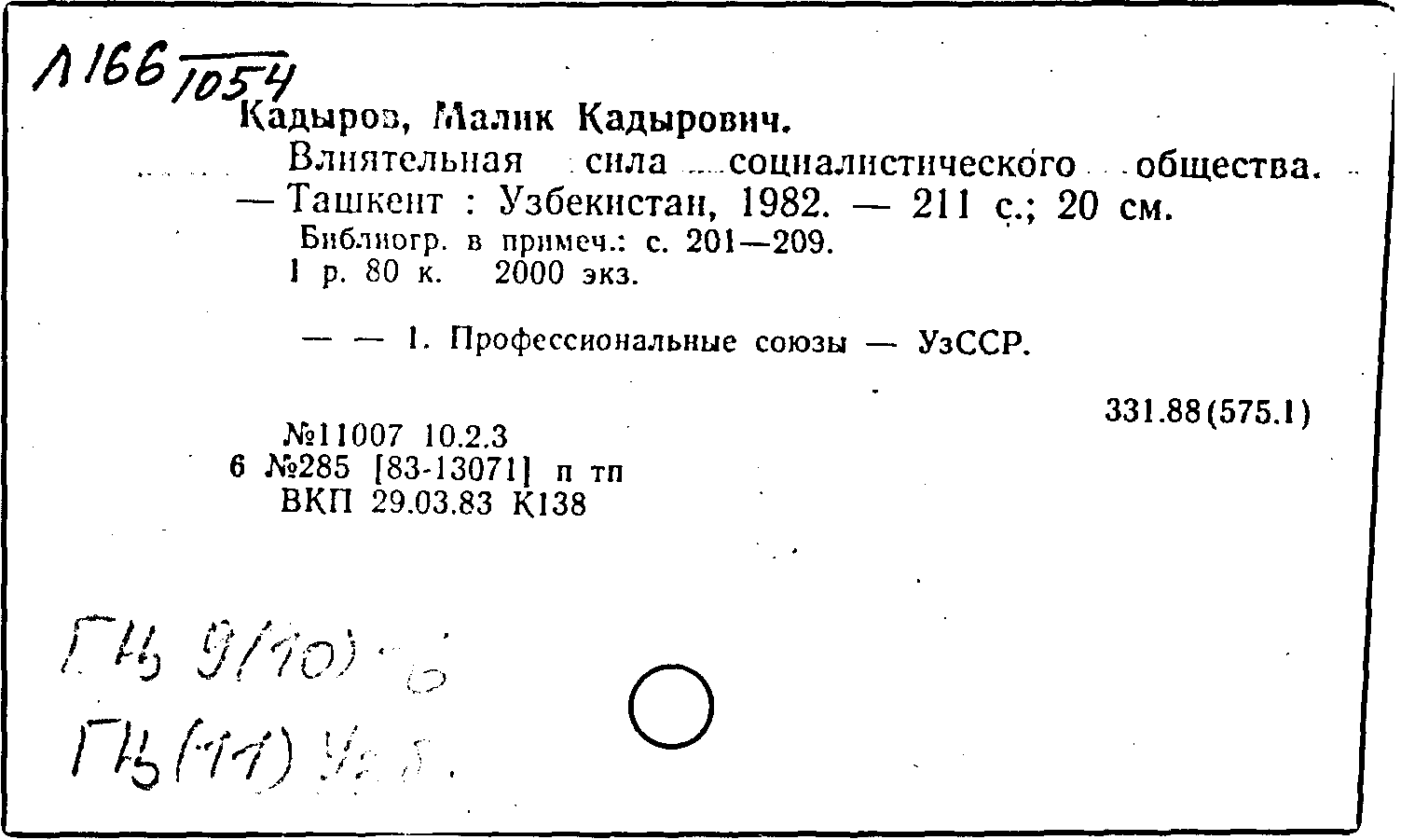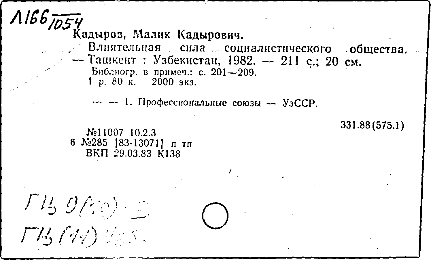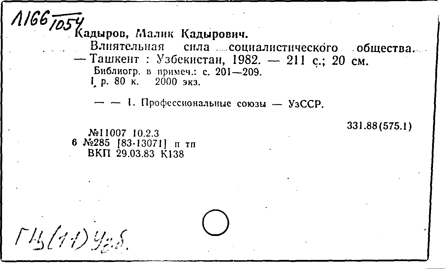 Фонд: КХ, Шифр: Л 166 /1054, Инв.№: 1468635
