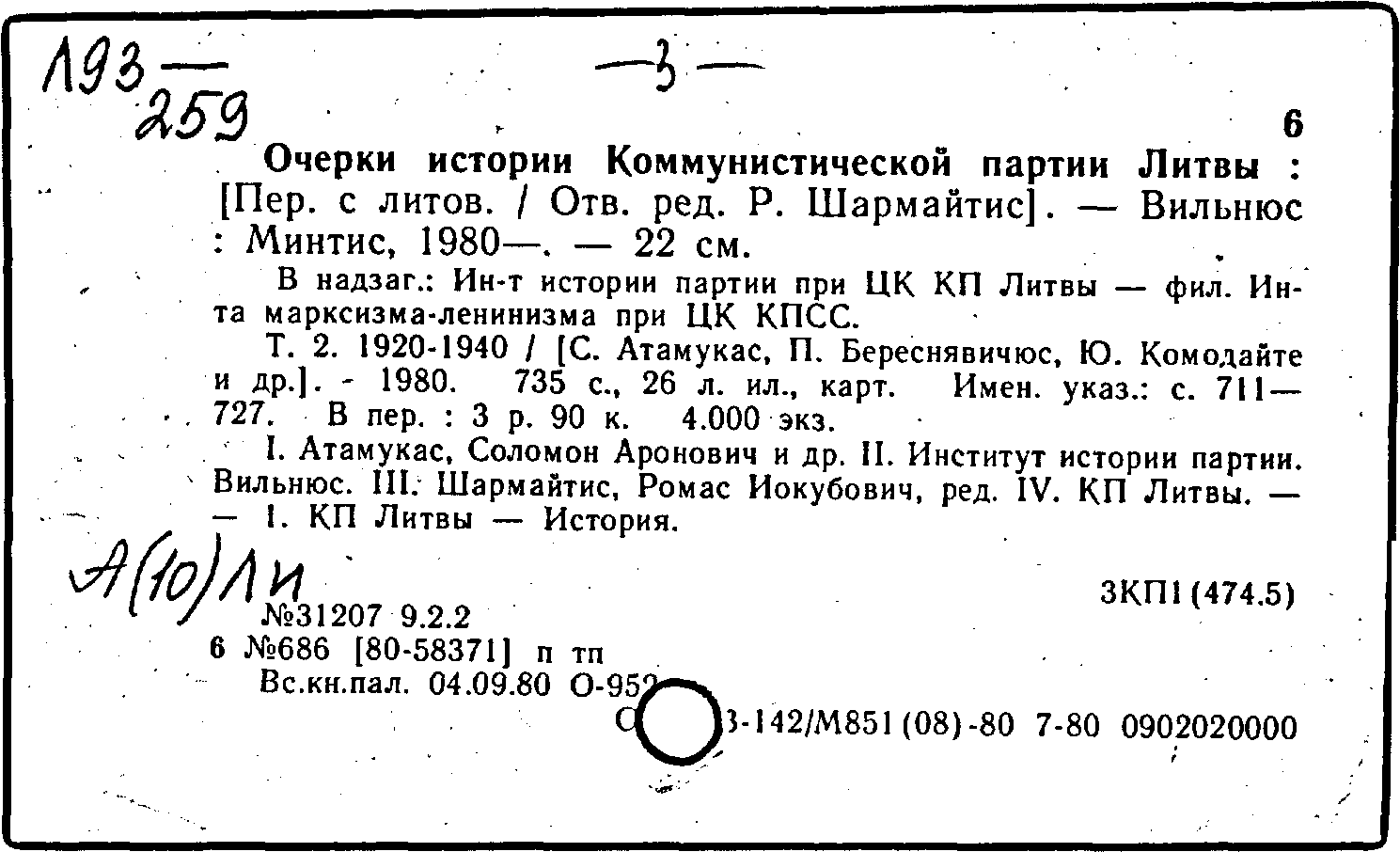Очерки истории Коммунистической партии Литвы: в 3-х томах