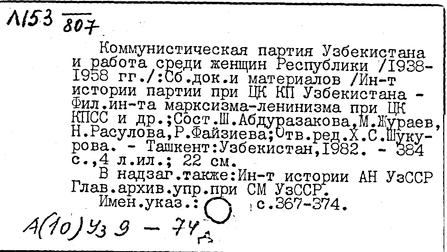 Книга: Коммунистическая партия Узбекистана и работа среди женщин Республики (1938-1958 гг.)