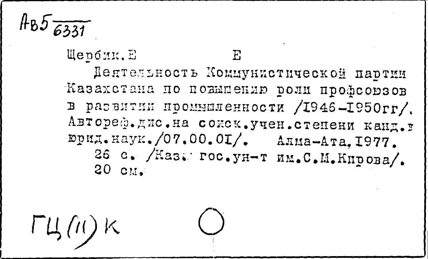 Деятельность Коммунистической партии Казахстана по повышению роли профсоюзов в развитии промышленности (1946-1950 гг.)