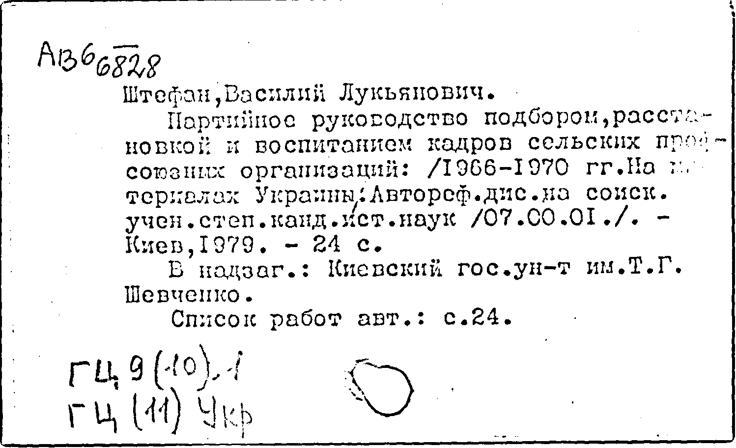Партийное руководство подбором, расстановкой и воспитанием кадров сельских профсоюзных организаций. (1966-1970 гг. )