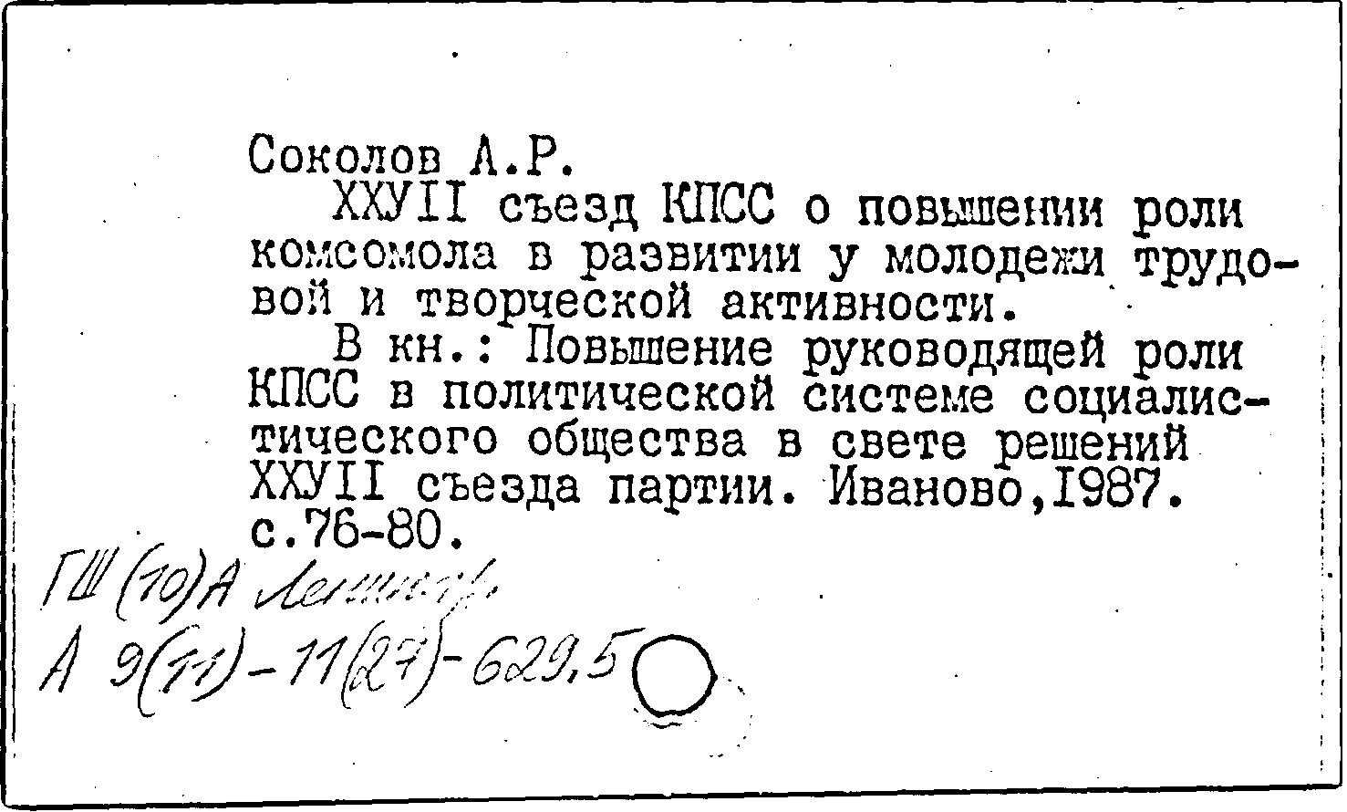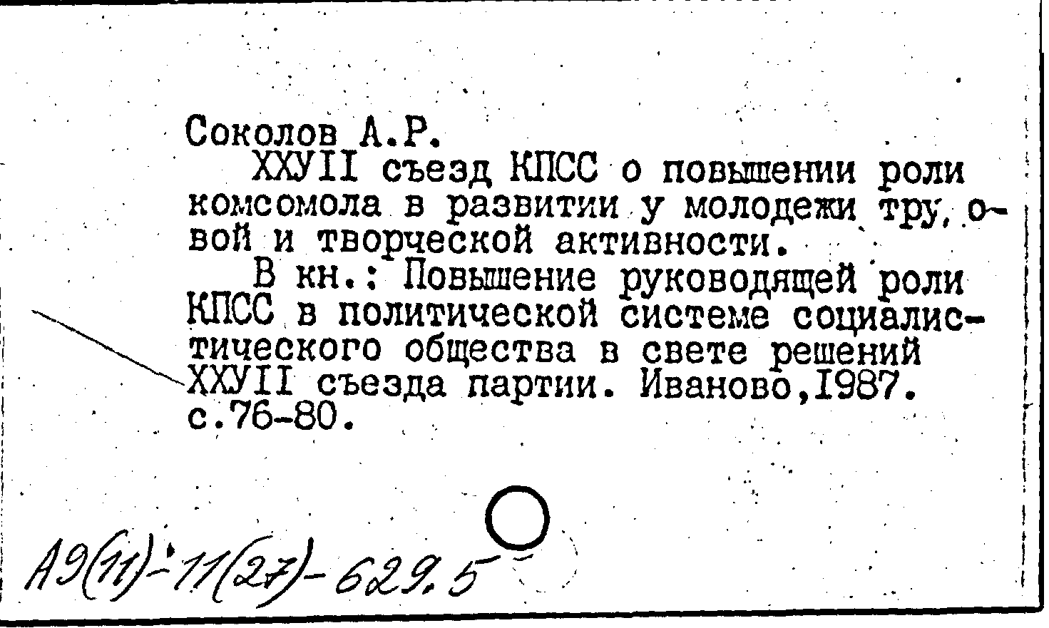 Коммунистическая партия Советского Союза (КПСС). История, 1985-1991 гг. \ Съезды, конференции, пленумы \ Съезды \ XXVII съезд КПСС. 1986 г. \ XXVII съезд КПСС о руководстве партии социалистическим строительством \ XXVII съезд КПСС об экономической политике партии \ XXVII съезд КПСС о деятельности партии по вопросам организации труда (18)
