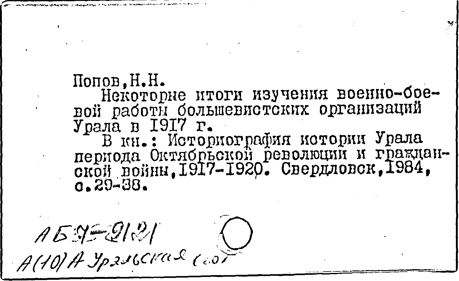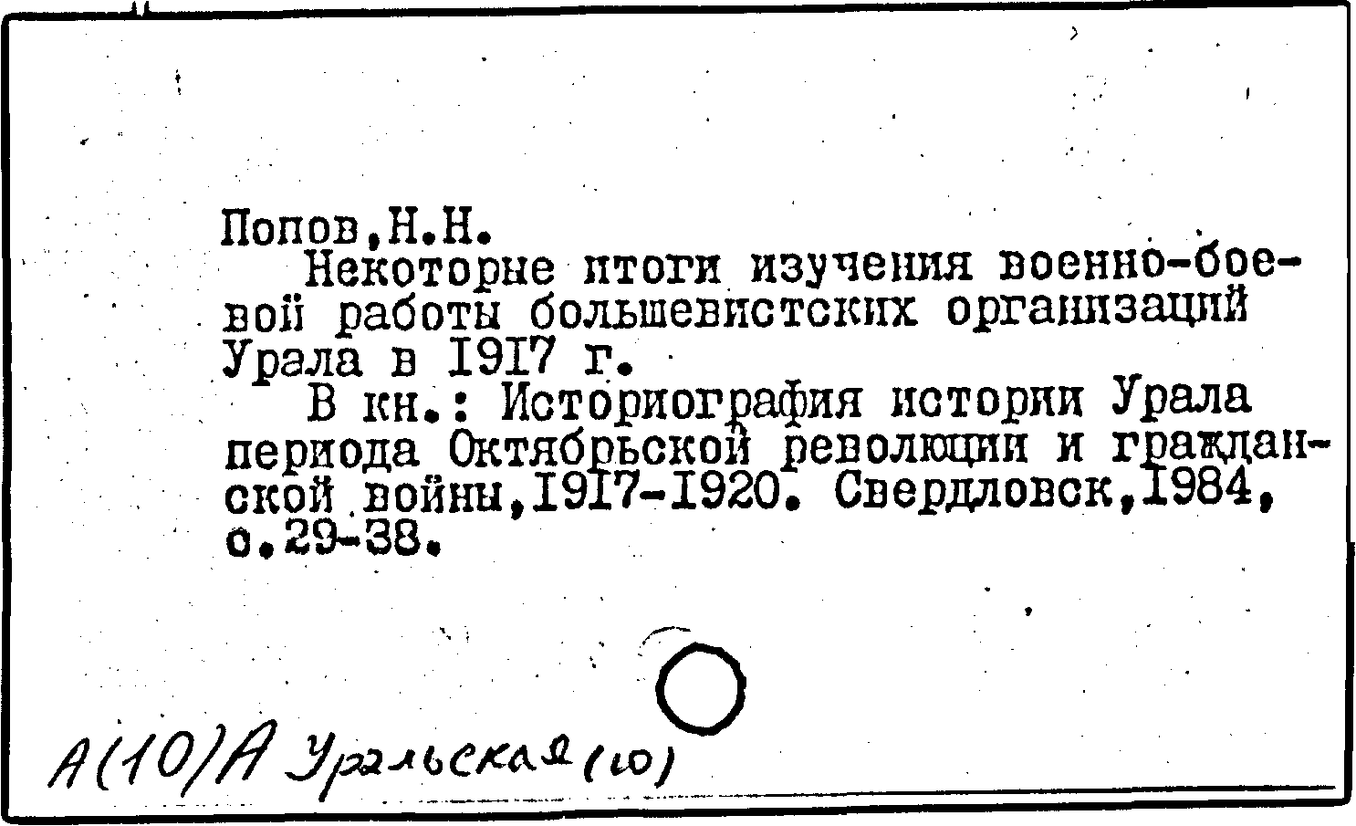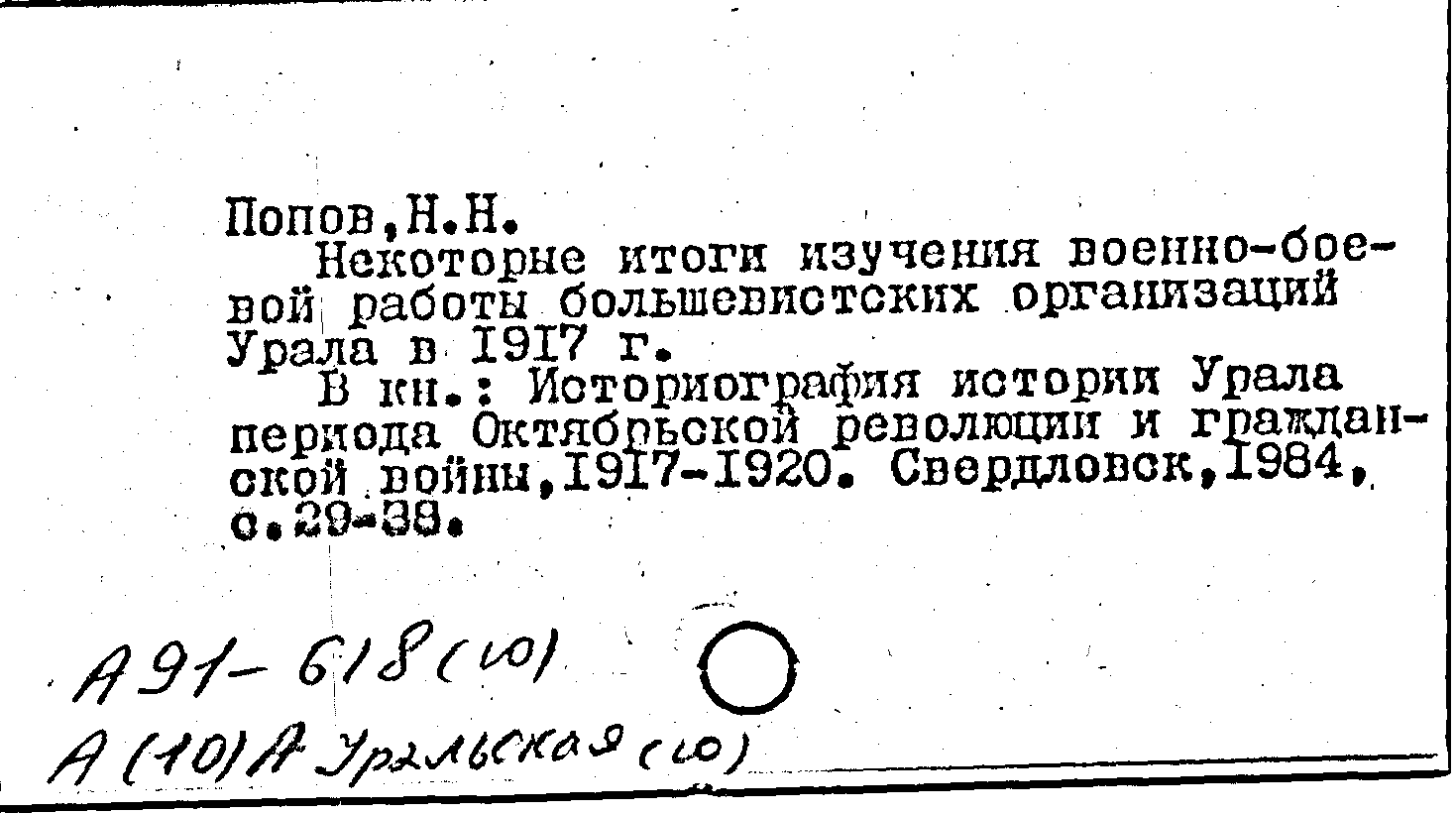 Некоторые итоги изучения военно-боевой работы большевистских организаций Урала в 1917 г.