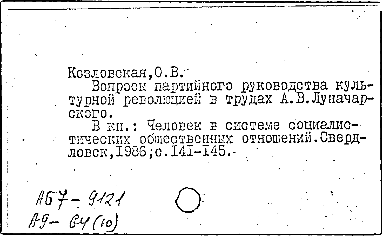 Книга (аналит. описание): Вопросы партийного руководства культурной революцией в трудах А. В. Луначарского