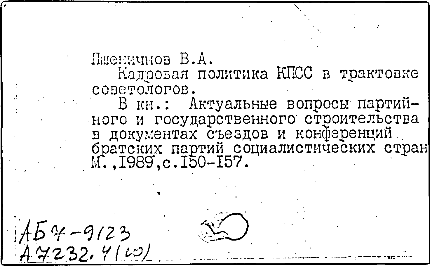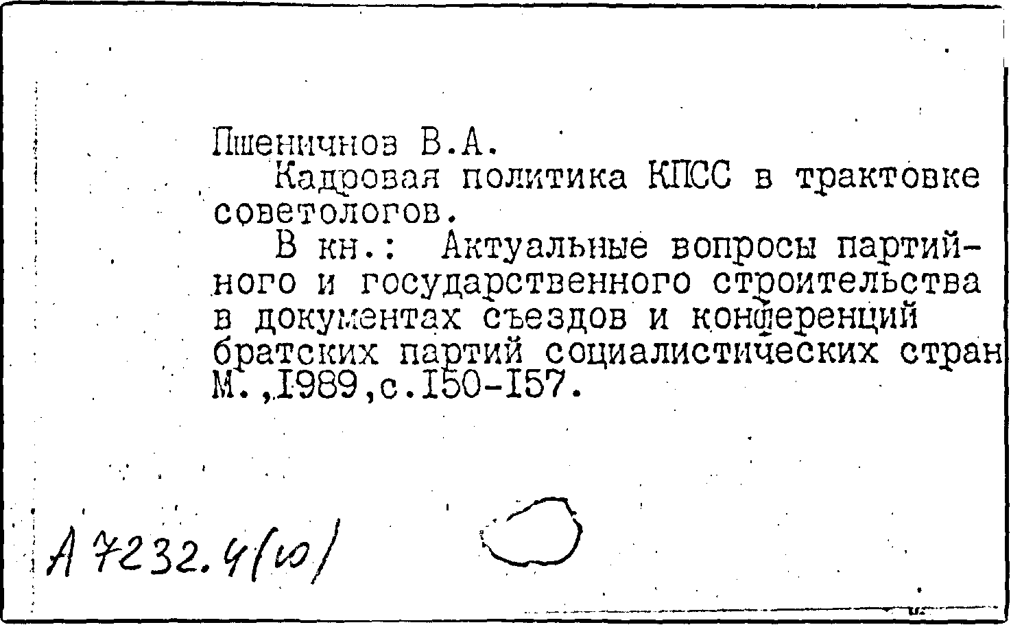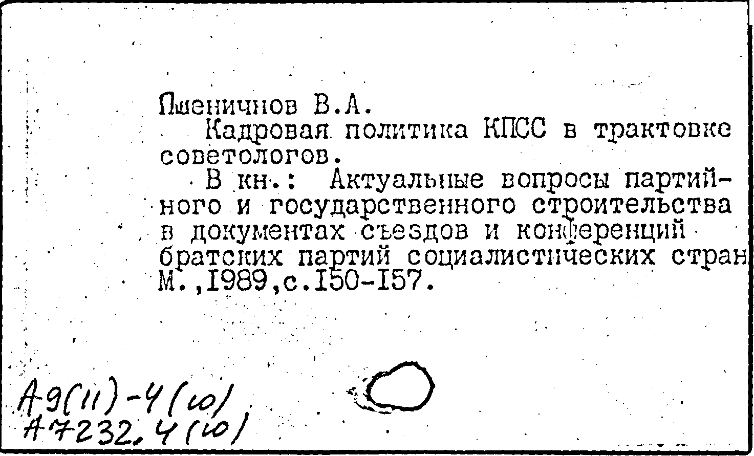 Книга (аналит. описание): Кадровая политика КПСС в трактовке советологов