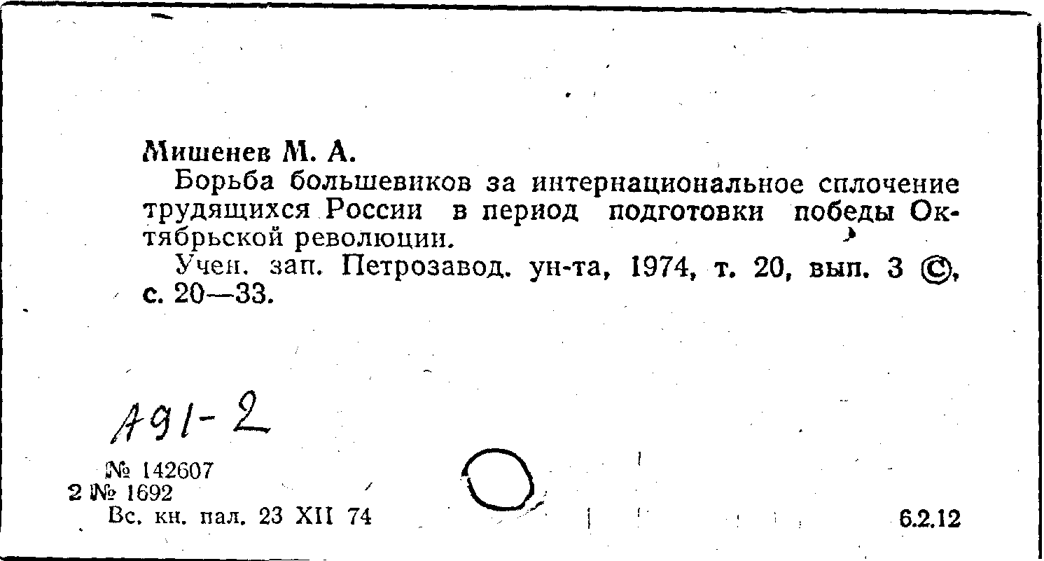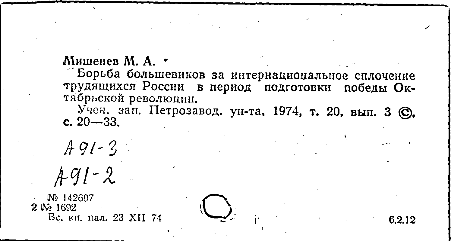 Книга (аналит. описание): Борьба большевиков за интернациональное сплочение трудящихся России в период подготовки победы Октябрьской революции
