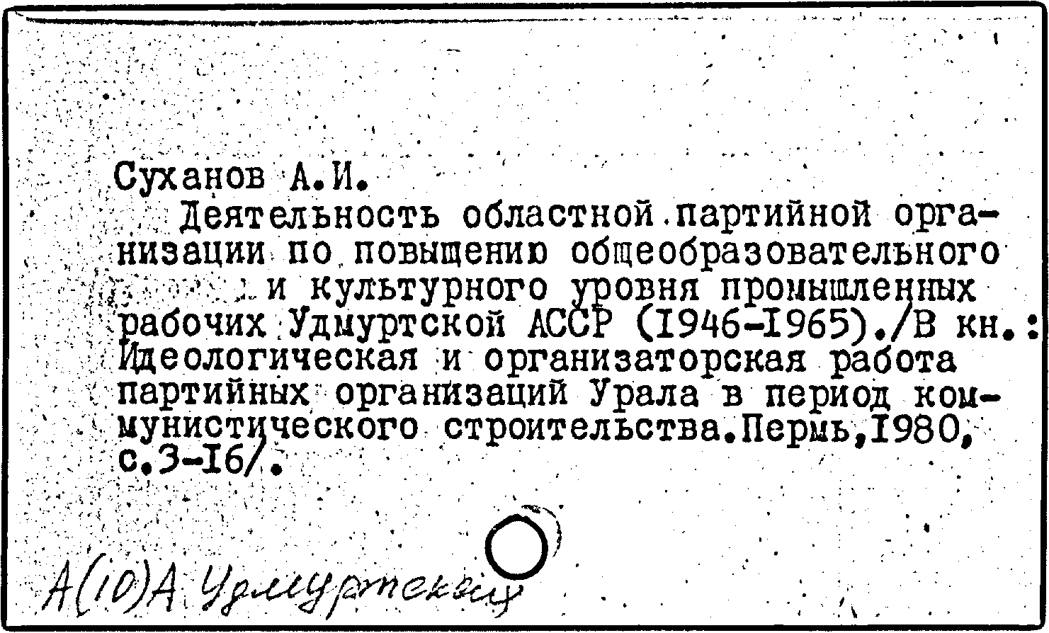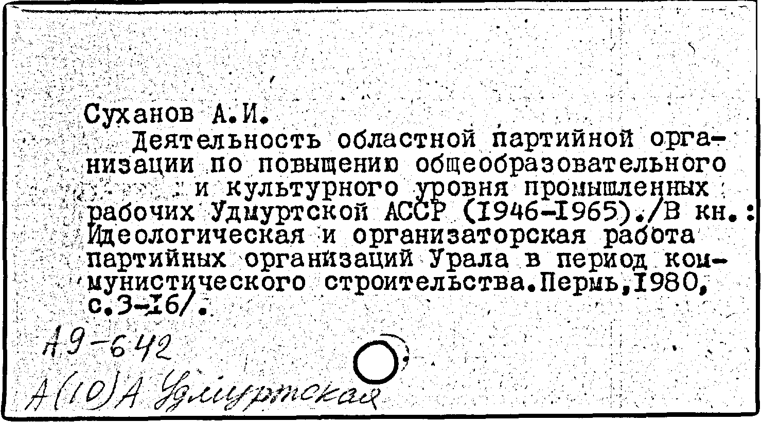 Книга (аналит. описание): Деятельность областной партийной организации по повышению общеобразовательного и культурного уровня промышленных рабочих Удмуртской АССР (1946-1965)