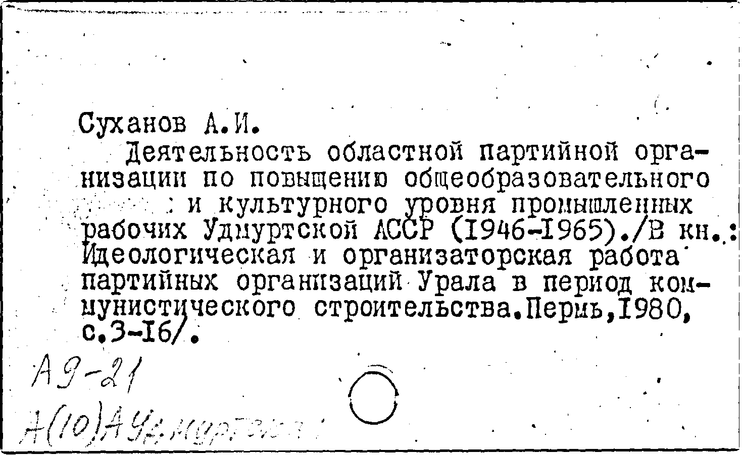 Деятельность областной партийной организации по повышению общеобразовательного и культурного уровня промышленных рабочих Удмуртской АССР (1946-1965)