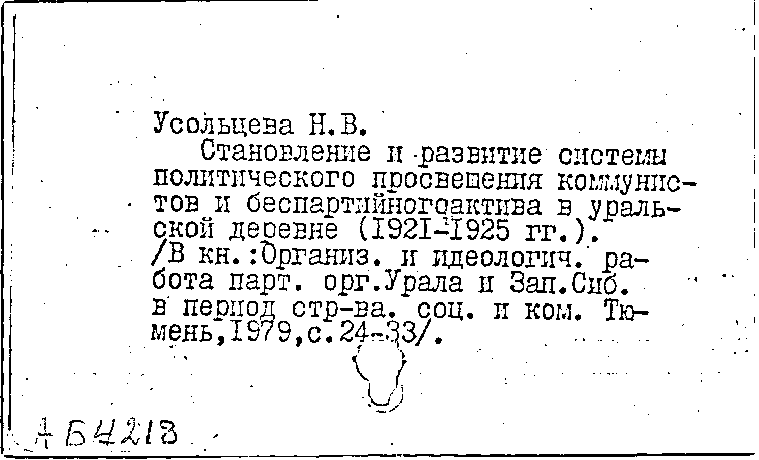 Становление и развитие системы политического просвещения коммунистов и беспартийного актива в уральской деревне (1921-1925 гг.)